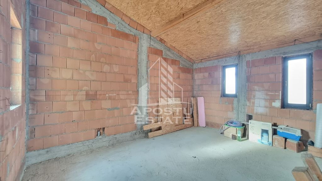 Apostu Estate ofera spre vanzare o casa individuala cu 4 camere si 2 bai, situat in Dumbravita (Kaufland/padure), intr-o locatie foarte cautata si usor accesibila. Casa are regim de inaltime P+1, suprafata utila de aproximativ 208 mp si teren de 670 mp. Compartimentarea casei este functionala si moderna. Parterul include hol de acces, living generos cu acces pe terasa, bucatarie spatioasa si dormitor. Etajul 1 are doua dormitoare dintre care unul dispune de dressing si are acces la balconul cu vedere catre padure, o baie si o camera de depozitare. Constructia este realizata integral din caramida, interior si exterior, cu acoperis din tigla si izolatie exterioara, asigurand durabilitate si confort termic. Proprietatea beneficiaza de toate utilitatile: curent electric, gaz, apa si canalizare si dispune si de carport cu 2 locuri de parcare. Casa se vinde la rosu si este alegerea ideala pentru o familie ce doreste sa isi finiseze noua casa dupa bunul plac. Oferim consultanta bancara gratuita prin partenerii nostri pentru alegerea celei mai avantajoase solutii de credit. Va asteptam cu drag la vizionare! ID intern: CP2750746