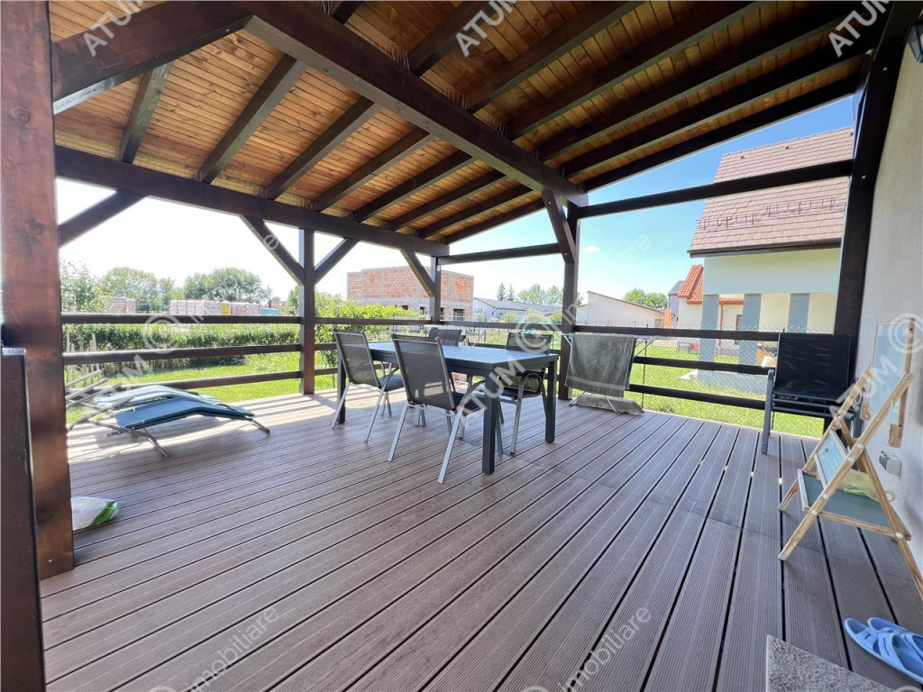 Va propunem spre vanzare o casa individuala cu 4 camere, 2 bai, terasa, amplasata pe un teren de 500 mp, situata in Sura Mica, la 5 minute de orasul Sibiu.