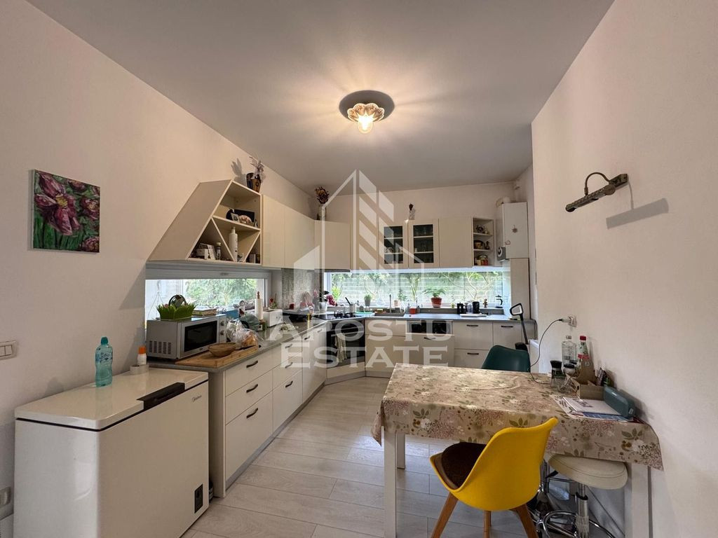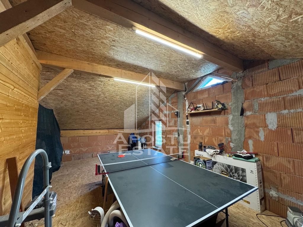 APOSTU ESTATE va propune spre vanzare o casa individuala cu 4 camere, situata in localitatea Mosnita Veche, intr-o zona linistita, cu acces facil catre Timisoara. Imobilul are un regim de inaltime Parter + Pod, o suprafata utila de 120 mp si este amplasat pe un teren generos de 700 mp. Anul constructiei este 2016, structura din beton, zidarie din caramida. Utilitati: Curent electric, apa, gaz, fosa septica, CATV, fibra optica. Compartimentare: Proprietatea este compartimentata eficient, fiind impartita in doua zone: Zona de zi: Hol Living spatios Baie de serviciu cu cabina de dus Bucatarie mobilata si utilata, cu blat din piatra compozit Terasa acoperita de aproximativ 15 mp cu acces din bucatarie si vedere spre gradina Zona de noapte: 3 dormitoare, dintre care unul matrimonial cu baie proprie si dressing Pod inalt utilizabil pentru depozitare, amenajabil ca spatiu locuibil (sala sport, loc de joaca etc.), cu acces atat din interior cat si pe scara exterioara. Finisaje si dotari: Usa intrare: PVC Usi interioare: celulare Tamplarie PVC cu geam tripan Podele din parchet si gresie Incalzire prin centrala proprie pe gaz, cu calorifere Casa se vinde complet mobilata si utilata: plita, cuptor, hota, masina de spalat rufe, masina de spalat vase, frigider cu congelator Curte amenajata: 4 locuri de parcare Casuta de gradina cu beci pentru depozitare Loc de joaca pentru copii Pomi fructiferi pe rod Pentru mai multe detalii sau pentru a programa o vizionare, nu ezitati sa ne contactati! CP2553475