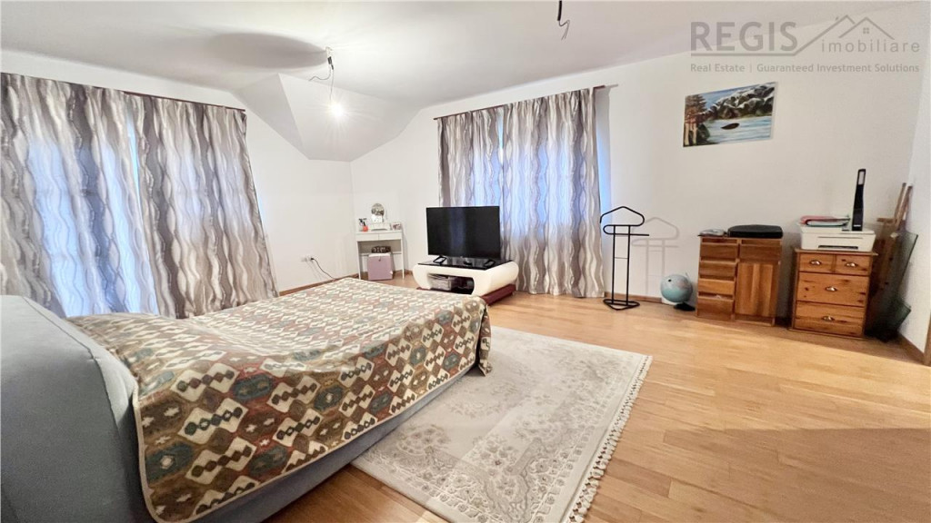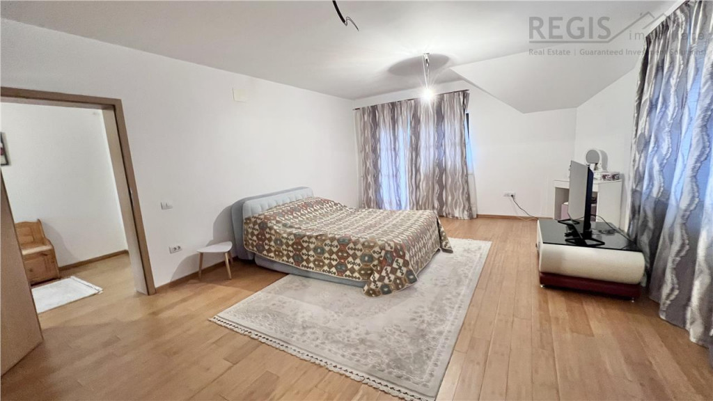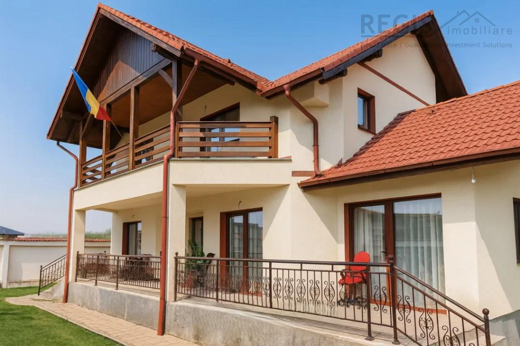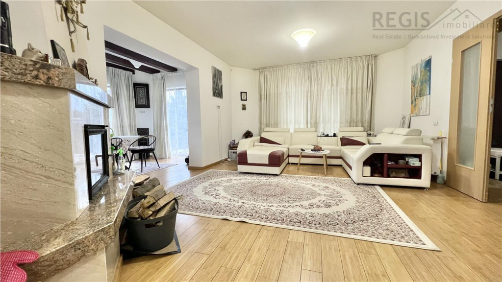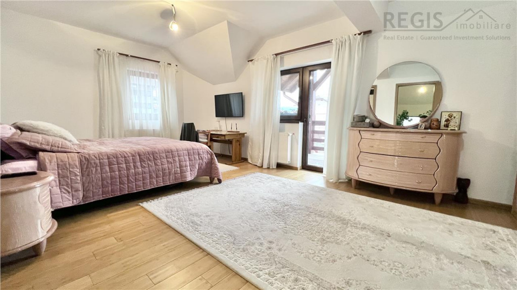 Proprietatea reprezinta o combinatie perfecta a designului cu utilitatea. Casa finalizata in anul 2020, foarte insorita, suprafete generoase (un total de 270 mp utili), doua garaje, curte libera 600 mp , zona barbeque, vedere spre munte , zona aerisita ! Locuinta este compartimentata astfel: 6 camere luminoase 4 bai Garaj cu usi automatizate, acces direct din strada pentru 2 masini Subsol: camera tehnica, camera pentru depozitare. Parter: hol, baie, living, bucatarie, dining, dormitor cu baie dubla, terasa . Etaj: hol, 3 dormitoare, doua bai si terasa mare. Dotari: -termoizolatie exterioara 10 cm grosime -incalzire centrala -semineu -parchet stratificat bambus -acoperis tigla -geamuri termopan Aceasta proprietate ofera un ambient placut si un spatiu generos, ideal pentru a crea amintiri de neuitat alaturi de familie si prieteni. Nu ratati ocazia de a deveni proprietar al acestei case deosebite! Comision 2%.