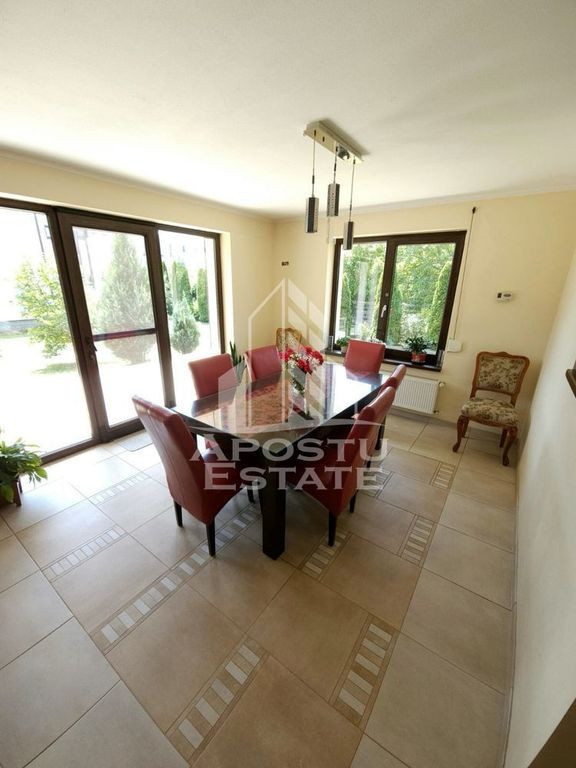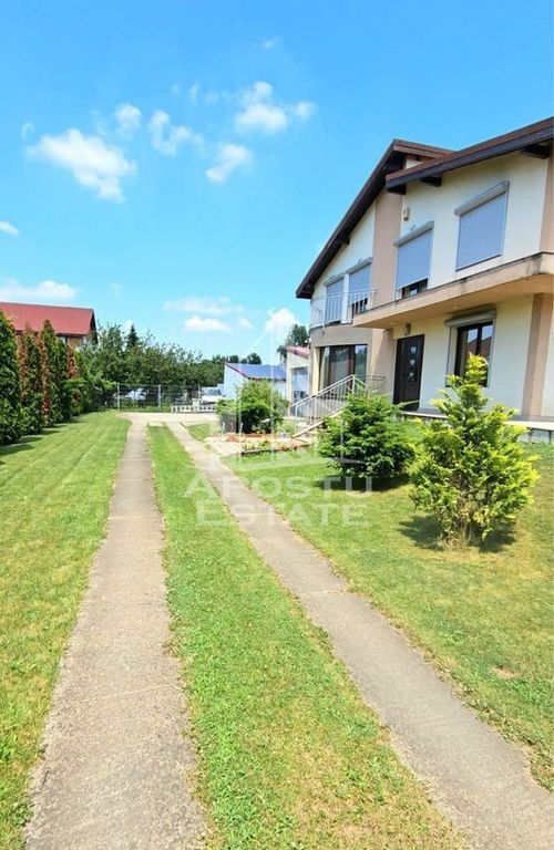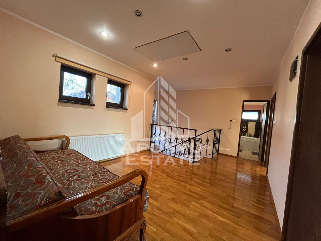 Apostu Estate va propune spre vanzare o casa individuala cu 6 camere, 3 bai, 2 balcoane si garaj in zona Braytim. Terenul dispune de inca o constructie care este construita pe structura metalica in anul 2022 , dispusa pe Parter si etaj. finalizata pe exterior , iar interiorul este la rosu.Suprafata construita pe Parter 110 mp , etaj 110 mp. Casa a fost finalizata in 2011 si este realizata pe structura clasica de beton armat si caramadida porotherm, izolata cu 10 cm de polistiren, acoperisul este realizat din tigla metalica acoperita cu rasina si pietricele, toate finisajele si materialele folosite sunt de o calitate superioara. Regimul de inaltime: Parter + Mansarda inalta, 200 mp utili si pod pentru depozitare de 20 mp Compartimentare: PARTER -Hol -Bucatarie + camara -Loc de luat masa cu usa spre terasa -Baie cu cabina de dus -Spatiu tehnic -Living cu semineu -Birou -Terasa 26mp ETAJ: -Hol -Living -Dormitor matrimonial cu iesire spre balcon generos, dressing. -Baie cu cada si dus separat -Dormitor +balcon -Dormitor + balcon -Baie cu cabina de dus Proprietatea beneficiaza de : - centrala termica proprie pe gaz in condesatie HANSA. - sistem de incalzire mixt in pardoseala ,calorifere si semineu; - Tamplarie PVC design Buena Noce SCHUCO Germania - rulouri Aluminiu la geamuri - usa de intrare Aluminiu cu bariera termica -Sistem de alarma si supraveghere video CURTE: -Porti intrare automatizate, -Spatiu verde , amenajat cu tuia ornamentali , gazon, brazi si sistem de aspersoare, -Foisor, -Tarc pentru caini, -Garaj cu deschidere automatizata pentru 2 masini , cu spatii de depozitare si beci. Va asteptam cu drag la o vizionare. Broker Imobiliar: Alexandra Vezureanu