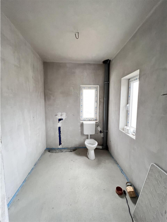 De vanzare casa individuala, intabulata, compusa din 7 camere decomandate, 2 bai si 2 balcoane, edificata in anul 2022 si amplasata pe un teren in suprafata de 730 mp, in Localitatea Cisnadie. Proprietatea este foarte bine amplasata si insorita avand orientare de la est la vest si este racordata la toate utilitatiile publice (curent, gaz, apa, canalizare, fibra optica). Locuinta insumeaza 175 mp utili, impartiti pe doua nivele: la parter regasim un living de tip open-space cu bucataria (aceasta poate fi inchisa in functie de preferintele cumparatorului), 2 dormitoare decomandate, baie cu aerisire naturala si hol cu casa scarii; la etaj sunt 4 dormitoare decomandate, baie cu geam, hol cu casa scarii si 2 balcoane.Pe langa suprafata utila foarte generoasa mai beneficiaza si de pod inalt pe toata suprafata casei cu planseu din beton. Imobilul se preda la stadiul gri la interior si la cheie la exterior, iar dotarile de care beneficiaza sunt: zidarie din caramida Porotherm de 30 cm exterior si izolatie din plistiren de 10 centimetri, pereti tencuiti cu tencuiala pe baza de var-ciment, geamuri termopan si tamplarie PVC, instalatii sanitare si electrice trase pe pozitii, sape autonivelante cu incalzire in pardoseala, acoperis solid din lemn cu invelitoare din tigla Bramac si sistem pluvial cu jgheaburi metalice. Zona in care se afla amplasat imobilul beneficiaza de o priveliste de vis asupra muntilor, Varfului Magura si Cetatii Cisnadioara avand acces in imediata vecinatate la centrul localitatii, zona de promenada cu acces la parc si lac, strand, patinuar, restaurante, magazine, scoli si gradinite. Pretul de achizite este de 275.000 euro negociabil, se accepta achizitia si prin credit ipotecar! ID intern:1176.