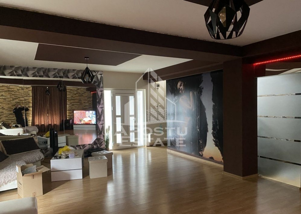 Apostu Estate va propune spre vanzare o casa individuala cu 7camere,in Dambovita,la doar 4 km de Centru. Casa este formata din 2 anexe si se desfasoara pe o suprafata de 350 mp utili,teren 600 mp. Compartimentare Primul corp Parter -hol -living open space cu bucataria + bar -salon de oaspeti -baie Etaj -3 dormitoare (unul cu jacuzzi) - baie Dispune de doua terase de cate 30 mp fiecare. Cel de-al doilea corp: Parter: -bucatarie de 25 mp,open space cu loc de luat masa. -baie Etaj -dormitor spatios cu terasa. Confortul termic se realizeaza prin intermediul centralei termice si al climelor. Proprietatea beneficiaza si de o hala pentru service auto. Se vinde mobilata si utilata,recent renovata. Casa este pretabila atat pentru locuit,cat si pentru diverse afaceri precum salon de infrumusetare, coafura, salon masaj,service auto,etc. Disponibila imediat! Va oferim consultanta si solutii financiare prin colaboratorii nostrii! Va asteptam cu drag la o vizionare! ID intern: 14169.