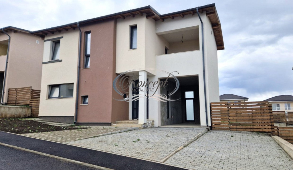 Koncept Imobiliare va propune spre vanzare case individuale cu CF, situate intr-o zona frumoasa si aerisita a localitatii Dezmir, intr-un ansamblu privat cu drum de 7 ml, asfaltat, iluminat si care dispune de toate utilitatile. Terenul pe care sunt amplasate are intre 400 si 440 mp, iar suprafata utila este de 139 mp, desfasurata pe 2 niveluri si compartimentate astfel: la Parter avem living open space cu bucatarie si acces pe terasa de 20 mp, camara, baie, hol si garaj, iar la Etaj avem dormitorul matrimonial cu dressing si baie proprie, inca 2 dormitoare, o baie si o logie cu suprafata de 7 mp. Casele dispun de CT proprie pe gaz si incalzire prin pardoseala, terasa cu pergola, gazon, sunt construite cu materiale de calitate atestate cu acte si poze din timpul constructiei, din care amintim aici: zidarie Cemacon, feronerie Vorne cu deschidere si rabatare, hidroizolatie Hidroplus, acoperis Bilka Steel de cea mai buna calitate. La pretul afisat se adauga TVA. Se recomanda datorita locatiei frumoase, a linistii si intimitatii pe care le ofera. Se predau semifinisate la interior si finisate complet la exterior. Pentru detalii complete, pentru programarea unei vizionari sau pentru a afla oferta noastra completa nu ezitati sa ne contactati telefonic, prin e-mail sau la sediul agentiei noastre, pe str. Aviator Badescu nr. 19, Cluj-Napoca. Id intern: P20404