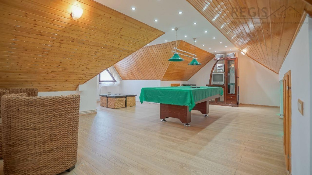 REGIS Imobiliare are placerea de a va prezenta o oportunitate de achizitie reprezentata printr-o casa individuala in zona Florilor. Proprietatea este pozitionata in imediata apropiere a sensului giratoriu din zona Gemenii, dar totusi fiind ferita de zgomotul si agitatia urbana. Vila este amplasata pe un teren generos de 425mp, beneficiind de intimitate. Imobilul este dispus pe S P E M, fiind compartimentat astfel: Subsolul este format din 5 incaperi cu destinatii diferite: camera tehnica, atelier, spalatorie cu uscatorie, spatiu de depozitare, camara cu o suprafata totala de 150 mp Parterul este compus din: zona de living cu suprafata vitrata mare, fapt ce ofera accesul luminii naturale, fiind dotat cu semineu, bucataria complet utilata si mobilata cu mobila import din Italia, fiind open-space cu locul de luat masa cu acces spre terasa, hol, baie si garaj pentru doua masini. Etajul detine: zona de relaxare, care poate fi amenajata dupa placul viitorilor proprietari, hol, 3 dormitoare fiecare cu acces spre balcon/terasa, dintre care unul matrimonial dotat cu baie proprie cu cada plus o alta baie cu cabina de dus. Mansarda este amenajata ca zona de recreere a proprietatii, unde regasim o masa de biliard, zona pentru Darts si jocuri de societate, cu o suprafata de 110 mp. Proprietatea are toate utilitatile si este dotata cu centrala termica pe gaz centrala termica cu lemne - incalzire cu calorifere, partial incalzire in pardoseala in zona de living - tamplarie PVC, cu geam termopan. Vila a fost construita de actualul prorpietar, fapt ce demonstraza ca a fost acordata o atentie deosebita pentru detalii, materialele folosite si finisaje. Casa dispune de un garaj pentru 2 masini dotat cu 2 usi electrice oferind acces din strada si spre curte, canal pentru reparatii auto. Casa se preda complet mobilata si utilata conform pozelor din prezentare, majoritatea pieselor de mobilier fiind din lemn masiv de import. Proprietatea este situata intr-o zona de case, la mica distanta de mijloace de transport in comun. Accesul auto, pana in centru se poate face in cca. 10 minute. Pretul este negociabil. Pentru detalii suplimentare si programare pentru vizionare, nu evitati sa ne contactati. Comisionul companiei este de 2% plus TVA. Va invitam sa profitati de aceasta oportunitate de a crea un camin spatios sau o afacere de succes aproape de inima orasului.