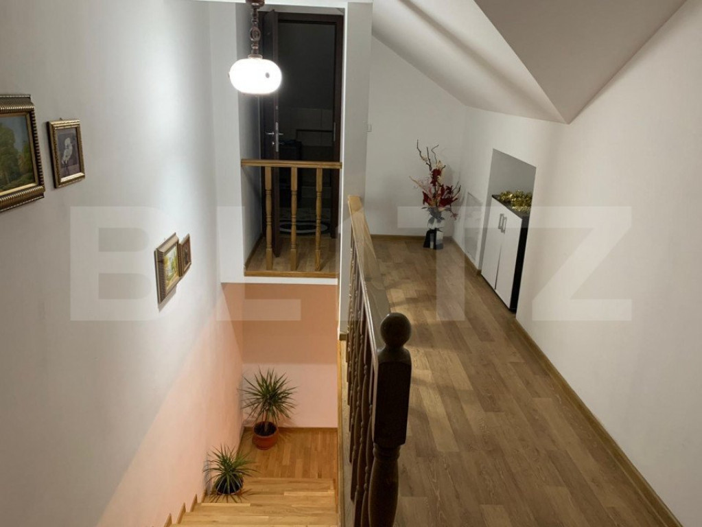 Blitz va ofera spre vanzare o casa deosebita in comuna Chisoda, o comuna linistita si cautata de la marginea Timisoarei. Casa este desfasruata pe parter+mansarda, detine o suprafata utila de aproximativ 200mp(mansarda la ora actuala nu este intabulata, dar proprietarul este dispus sa o intabuleze in cazul in care cineva doreste sa achizitioneze prin credit, insa pana atunci nu pentru ca il deranjeaza la impozit) si este compartimentata dupa cum urmeaza: parter- hol spatios cu acces in stanga si dreapta in doua dormitoare spatioase, baie mare cu geam, dressing, bucatarie spatioasa cu acces in terasa, livingul cu acces in terasa si intr-o camera tehnica cu acces in garaj. mansarda: hol cu acces in doua dormitoare, dressing si a doua baie spatioasa cu geam tip velux. Casa este amplasata pe o parcela de teren de 450mp, cu un front stradal de 16ml. In curtea din fata a casei avem un spatiu verde amenajat, cu alee, spatii verzi si acces auto cu garaj, iar in partea din spate avem o terasa acoperita de 20 mp, o terasa normala si spatiu verde. Imobilul este construit cu materiale de calitate si foarte bine gandit. Va asteptam la vizionare! Cod ofertă / ID BLITZ: P6688 Id intern: P6688