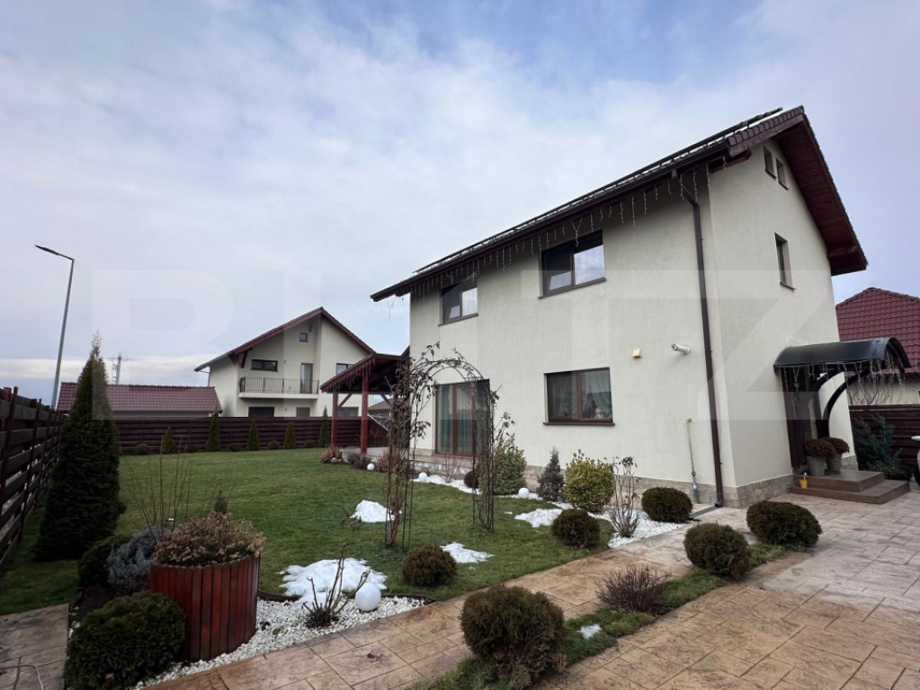 Casa individuala 4 camere, mobilata, utilata modern - Izvor, Tarlungeni Blitz Imobiliare vă propune spre vânzare o casă individuală, ideală pentru familie, situată într-o zonă liniștită, care oferă confort, spațiu și eficiență energetică. Caracteristici generale: • Suprafață utilă: 112 mp • Suprafață teren: 500 mp • Compartimentare practică și funcțională Compartimentare: • 4 camere spațioase, bine luminate natural • 2 băi moderne • Bucătărie • Mansardă – cu posibilitate de amenajare ca spațiu locuibil • Terasă, căsuță de grădină și beci Utilități & dotări: • Racordată la apă, gaz, curent electric • Fosă septică • Centrală termică pe gaz cu distribuție în întreaga locuință • Încălzire în pardoseală la parter • Panouri solare aprobate prin programul Casa Verde (montaj programat pentru toamnă), pentru eficiență energetică sporită Exterior amenajat: • Grădină cu gazon, brazi ornamentali și flori • Curte amenajată, ideală pentru relaxare • Parcare betonată (amprentată), cu locuri pentru două autoturisme O proprietate completă, eficientă și primitoare, potrivită pentru o familie care își dorește confort, spațiu și un stil de viață echilibrat. Pentru informații suplimentare și programarea unei vizionări, vă invităm să ne contactați. Cod ofertă / ID BLITZ: P140662 Id intern: P140662