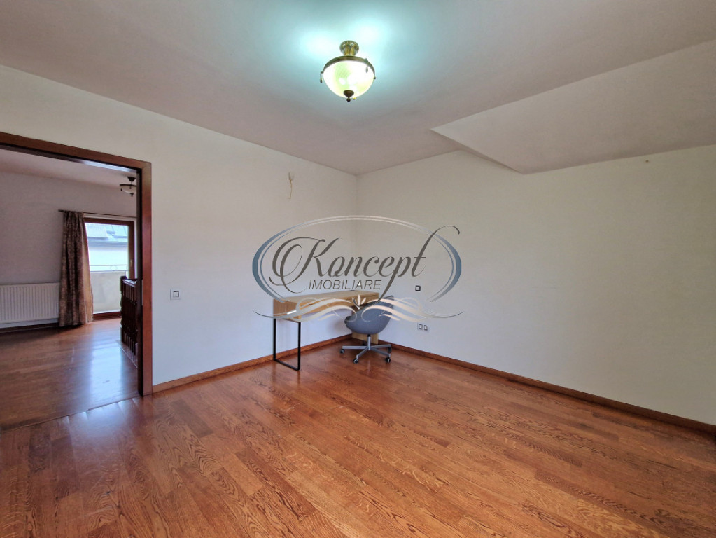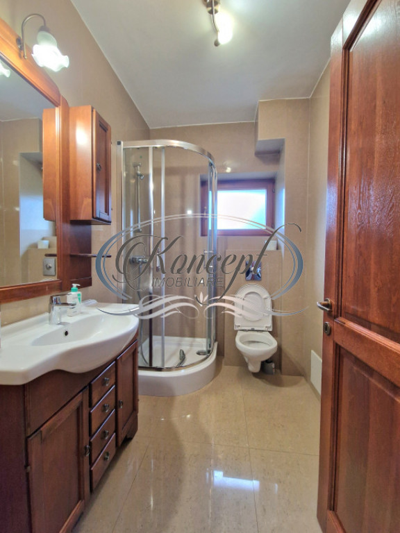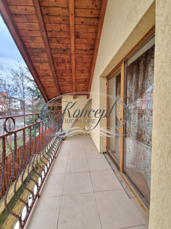 Koncept Imobiliare va ofera spre inchiriere o casa individuala, situata in cartierul Europa, intr-o zona linistita, cu acces rapid catre principalele artere ale orasului si puncte de interes urban. Proprietatea beneficiaza de orientare mixta, oferind lumina naturala pe tot parcursul zilei, fiind ideala atat pentru rezidenta, cat si pentru activitati de birouri sau sediu social. Casa are regim de inaltime S+P+1+Pod si o suprafata utila de aproximativ 170 mp, fiind amplasata pe un teren cu suprafata libera de circa 120 mp, amenajat cu gazon si pavaj, cu posibilitate de parcare pentru pana la 4 autoturisme si un loc de parcare in garaj. Curtea este completata de o terasa spatioasa, pozitionata la nivelul parterului, perfecta pentru momente de relaxare. La parter regasim o bucatarie complet utilata, dotata cu masina de spalat vase, frigider, cuptor, plita si hota, o incapere separata pentru dining, un living generos cu semineu, hol cu dressing, baie cu geam, casa scarii, garaj cu usa actionata electric si acces catre pivnita. Etajul este compus din trei camere, dintre care una beneficiaza de baie proprie, un hol cu spatiu de depozitare, o a doua baie si patru balcoane care aduc un plus de luminozitate si deschidere. Incalzirea se realizeaza prin centrala termica proprie cu calorifere. Finisajele sunt moderne, cu mobilier din lemn masiv si usi interioare din lemn, elemente care contribuie la o atmosfera calda si eleganta. Proprietatea este partial mobilata, permitand adaptarea usoara in functie de nevoile viitorului chirias. Datorita compartimentarii eficiente, suprafetelor generoase, a curtii amenajate si pozitiei intr-o zona linistita, casa este potrivita atat pentru o familie care isi doreste confort si intimitate, cat si pentru firme in cautarea unui spatiu reprezentativ pentru birouri, cu acces facil si posibilitati multiple de parcare. Pentru informatii suplimentare, programarea unei vizionari sau pentru a afla oferta noastra completa va stam la dispozitie telefonic, prin e-mail sau la sediul agentiei noastre, pe str. Aviator Badescu, nr. 19, Cluj-Napoca. Id intern: P1080