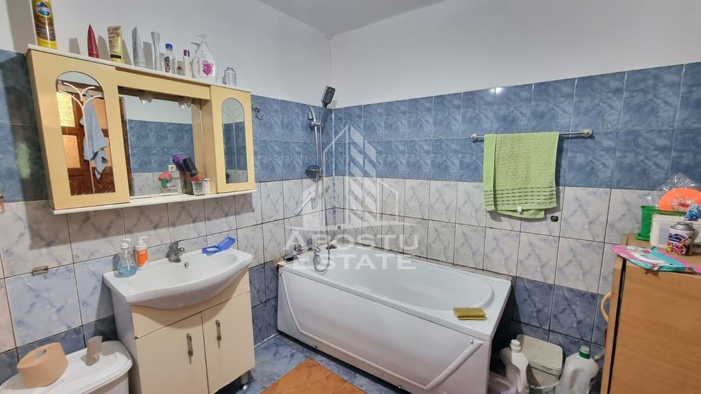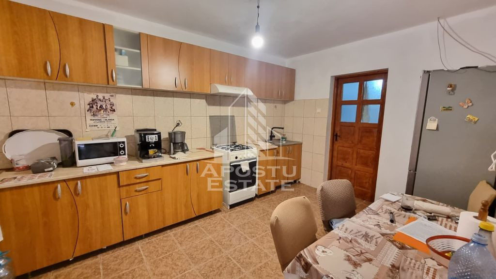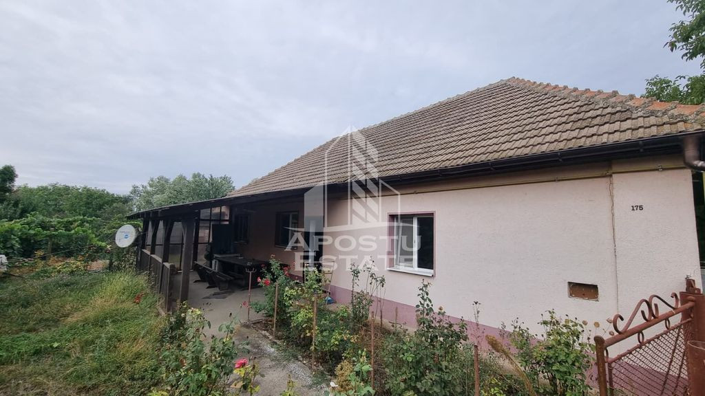 Apostu Estate va ofera in exclusivitate spre vanzare casa individuala decomandata pe regim de inaltime P cu teren generos de 1800 mp, front stradal mare cu 2 porti de acces intr-o zona linistita din satul Covaci comuna Sanandrei, la 10 minute de Timisoara Casa are 80mpu si este compartimentata astfel: -hol de acces in toate camerele - bucatarie complet utilata si mobilata - living spatios si luminos la strada - dormitor - antecamera - camera de depozitare - baie ce dispune de cada si geam Confortul termic este asigurat de centrala proprie pe gaz, sau centrala proprie pe lemn. Dotari: - teren de 1800mp din care 1000mp in proprietate si 800mp in folosinta de la primarie - construita din caramida si vaiuga - izolatie exterioara din polistiren de 10 cm cu Eps 80 si tencuiala - 2 anexe - terasa - utilitatiile( curent, gaz, apa curenta, fosa septica) - tamplarie PVC cu geamuri termopan Va asteptam la o vizionare,mai multe detalii la telefon! ID intern: CP2810399