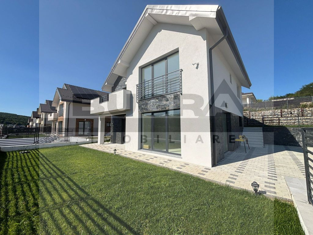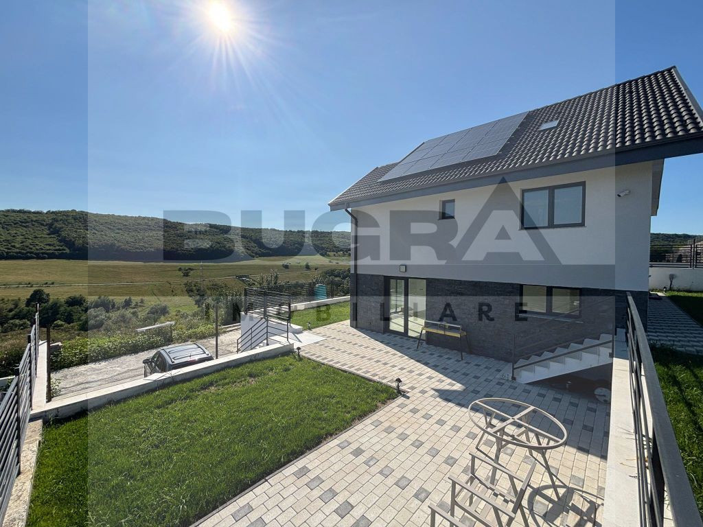 Vă prezentăm o casă unifamilială modernă, situată în Popești (comuna Baciu), într-un ansamblu rezidențial exclusivist format din 13 unități individuale. Locuința are o suprafață utilă de 140 mp, un pod mansardabil de 50 mp și este amplasată pe un teren generos de 500 mp. Compartimentare: Parter: living spațios, bucătărie, baie, cămară și spațiu de depozitare Etaj: 3 dormitoare, 2 băi și terasă de 10 mp Pod/Mansardă: open space 50 mp, ideal pentru depozitare sau amenajare ulterioară Casele sunt construite cu materiale premium, incluzând polistiren de 15 cm, tâmplărie SALAMANDER Blue Evolution cu geam tripan, încălzire în pardoseală, terasă cu hidroizolație PVC și panouri fotovoltaice de 5 kW. Curtea este complet amenajată, cu alei pavate, parcare acoperită și garduri de beton cu porți automate. Locuințele se predau complet finisate, cu bucătărie mobilată și utilată, băi echipate, parchet, scări din lemn masiv și finisaje de calitate superioară, pentru un confort și un aspect elegant. Zona este liniștită, cu acces facil la oraș, la doar 4 km de Lidl și de punctele de interes din zonă. Pentru mai multe detalii și programarea unei vizionări, vă așteptăm cu drag!