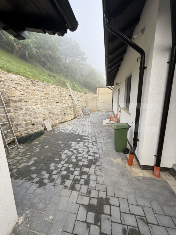 Blitz Imobiliare vă propune o oază de liniște, confort și rafinament – casa ideală pentru sufletul tău Imaginează-ți cum ar fi să te trezești dimineața într-o casă cochetă, parter, unde lumina pătrunde liniștit prin ferestre, iar liniștea naturii îți dă energie pentru întreaga zi. Localizată într-o zonă liniștită, foarte aproape de centrul orașului, pădure și verdeață, această proprietate devine locul perfect pentru cei care caută echilibrul între modern și natură. Detalii care fac diferența: • Suprafață utilă: 76 mp • Teren generos: 600 mp • Garaj propriu și terasă pentru momentele de relaxare • 1 dormitor spațios cu dressing • Living modern și luminos • Bucătărie complet utilată • O Baie elegantă și spațioasă + o baie de servici cu duș • Beci cu cameră tehnică pentru confort și organizare • Hol bine compartimentat Avantaje: • Mobilier nou și modern – te muți imediat fără griji • Curte spațioasă și pavată – loc ideal pentru familie, prieteni sau seri liniștite sub cerul liber • Atmosferă calmă, perfectă pentru cei care își doresc o oază de liniște și intimitate, la doar câțiva pași de natură Fie că ești un cuplu tânăr în căutarea unui început nou sau cineva care își dorește un refugiu departe de agitația urbană, această casă îți oferă tot ce ai nevoie: funcționalitate, eleganță și liniște. Cod ofertă / ID BLITZ: P152729 Id intern: P152729