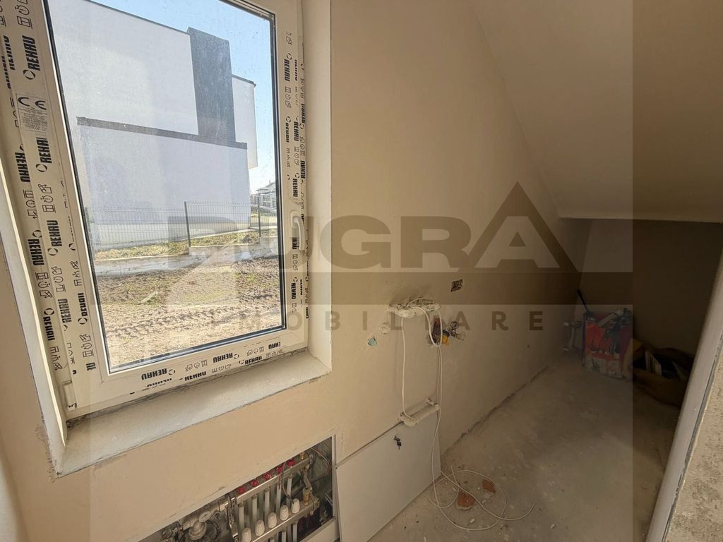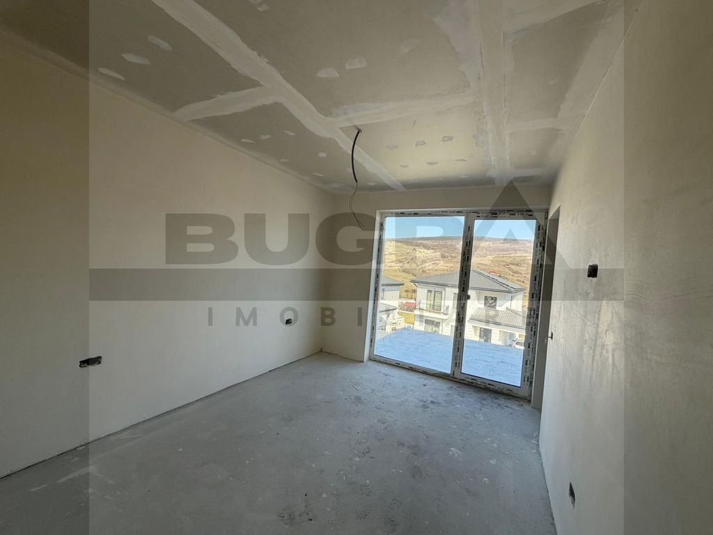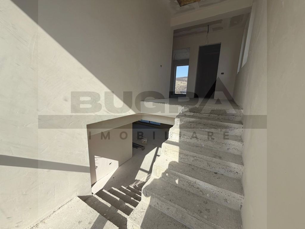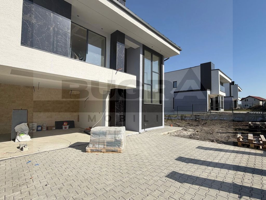 Bugra Imobiliare vă prezintă un proiect rezidențial exclusivist, conceput pentru cei care își doresc liniște, natură și confort premium, la doar câteva minute de oraș. O proprietate care reușește să combine perfect eleganța unei case moderne cu farmecul unei locații spectaculoase lângă pădure. Fiecare locuință are o suprafață construită de 184 mp și este amplasată pe un teren generos de 716 mp, oferind spațiul ideal pentru o viață confortabilă, cu intimitate și deschidere către natură. Ansamblul este format din opt case individuale, fiecare beneficiind de acces pe drum privat asfaltat, iluminat public și sens giratoriu, conceput pentru un trafic facil și sigur. Un element cu adevărat special al proiectului este parcul privat de aproximativ 500 mp, destinat exclusiv rezidenților, un loc unde copiii se pot juca în siguranță, iar serile de vară pot fi petrecute în liniște, într-un cadru verde și relaxant. Locuințele sunt construite cu accent pe calitate și eficiență energetică: • încălzire în pardoseală pe ambele niveluri • tâmplărie premium Rehau • acoperiș cu țiglă metalică Bilka • izolații și finisaje de calitate superioară • pod izolat cu vată minerală de 20 cm • detalii arhitecturale elegante cu inserții de piatră naturală Pentru un confort complet și costuri reduse pe termen lung, există și opțiunea instalării de panouri fotovoltaice și pompă de căldură, adaptate nevoilor viitorilor proprietari. Compartimentare gândită pentru confortul unei familii moderne Parterul este dedicat zonei de zi și socializării: -Hol de acces -Living generos cu bucătărie open-space -Cămară -Baie -Terasă acoperită de 22,5 mp, perfectă pentru mesele în aer liber -Garaj de 25 mp pentru două mașini, cu acces direct în casă Etajul oferă un spațiu intim și bine organizat: -Hol -3 dormitoare -3 dressinguri -2 băi -Balcon și terasă cu priveliște deosebită asupra zonei verzi Proprietatea beneficiază de toate utilitățile: apă, gaz, curent, canalizare, iar conexiunea la internet și televiziune prin fibră optică este disponibilă. Localizarea este un alt mare avantaj: o zonă superbă, aproape de pădure, cu drum asfaltat până la proprietate, transport public în apropiere și trei căi de acces către Cluj-Napoca – la aproximativ 3,5 km de intrarea în oraș și 8 km de centru. În plus, pentru investitori sau dezvoltări viitoare, există disponibilă și o parcelă de 3511 mp la strada principală, cu proiect pentru pensiune. Această proprietate nu este doar o casă – este un stil de viață, unde liniștea naturii, spațiul generos și proximitatea orașului creează echilibrul perfect între relaxare și dinamica urbană. Dacă vă imaginați diminețile într-o casă luminoasă, cu priveliște către natură și serile petrecute pe terasă, într-un cadru liniștit, Bugra Imobiliare vă invită să descoperiți această proprietate la o vizionare.
