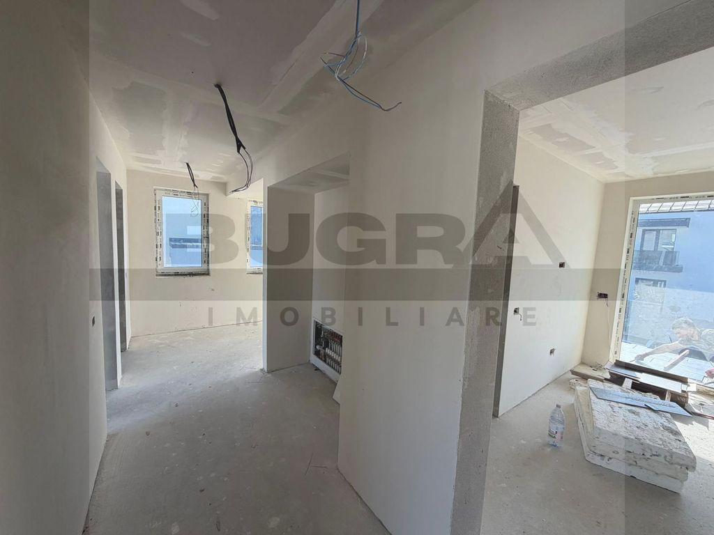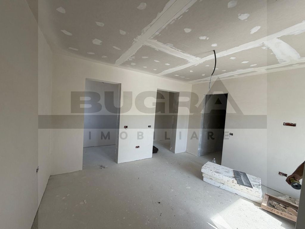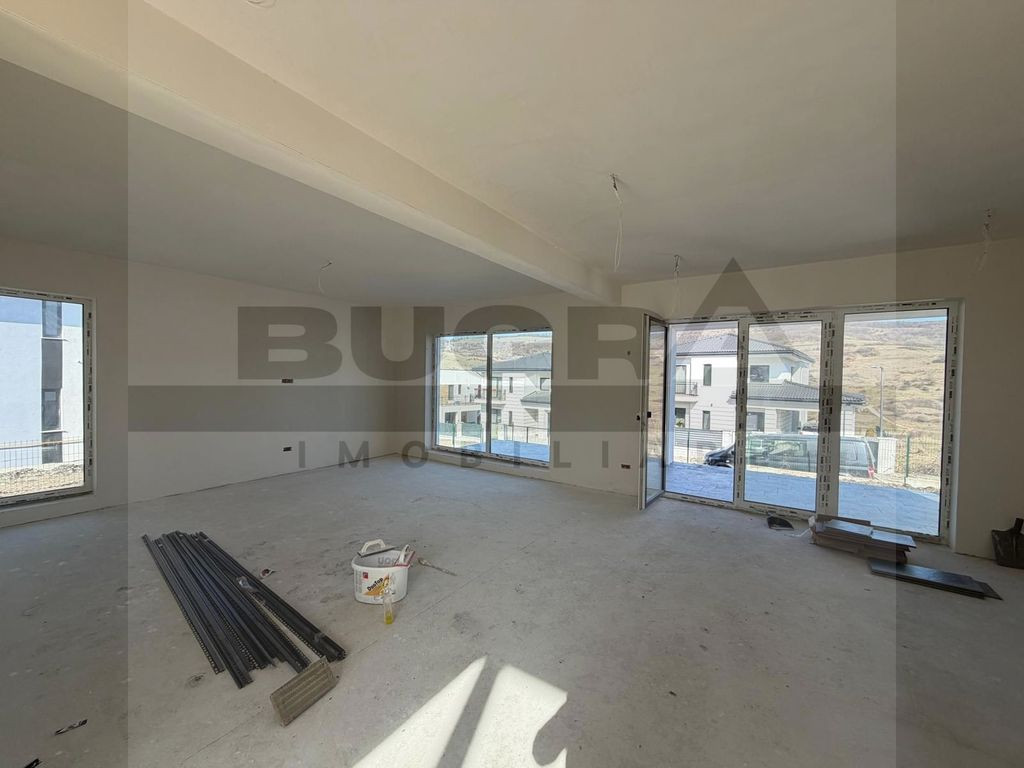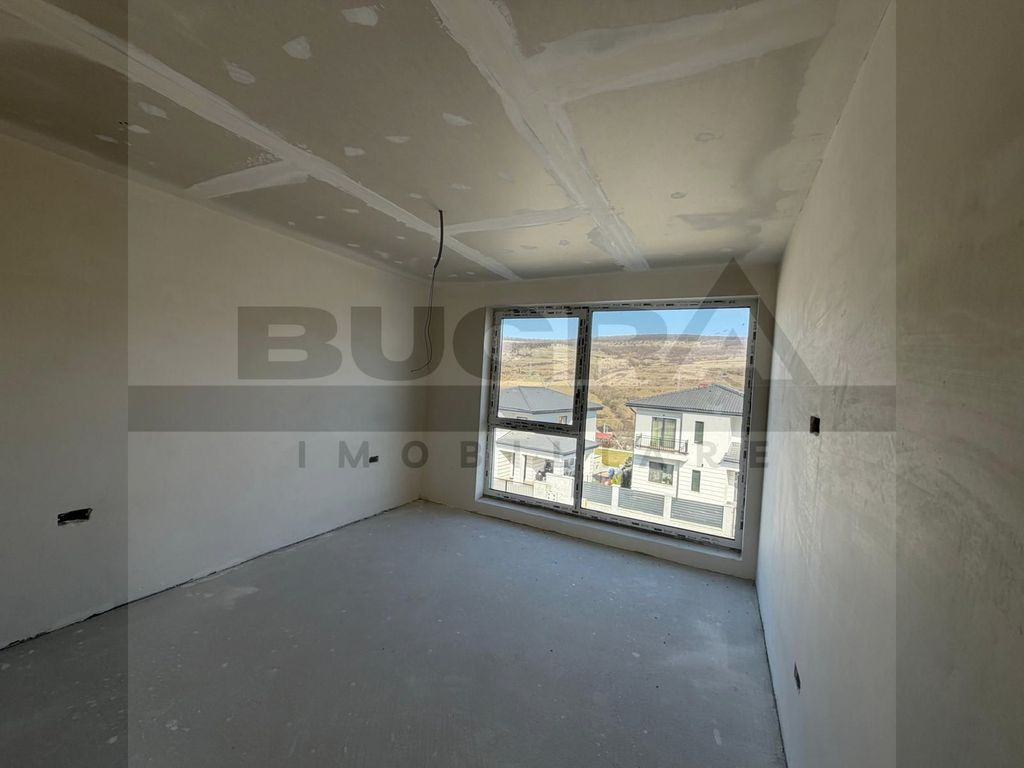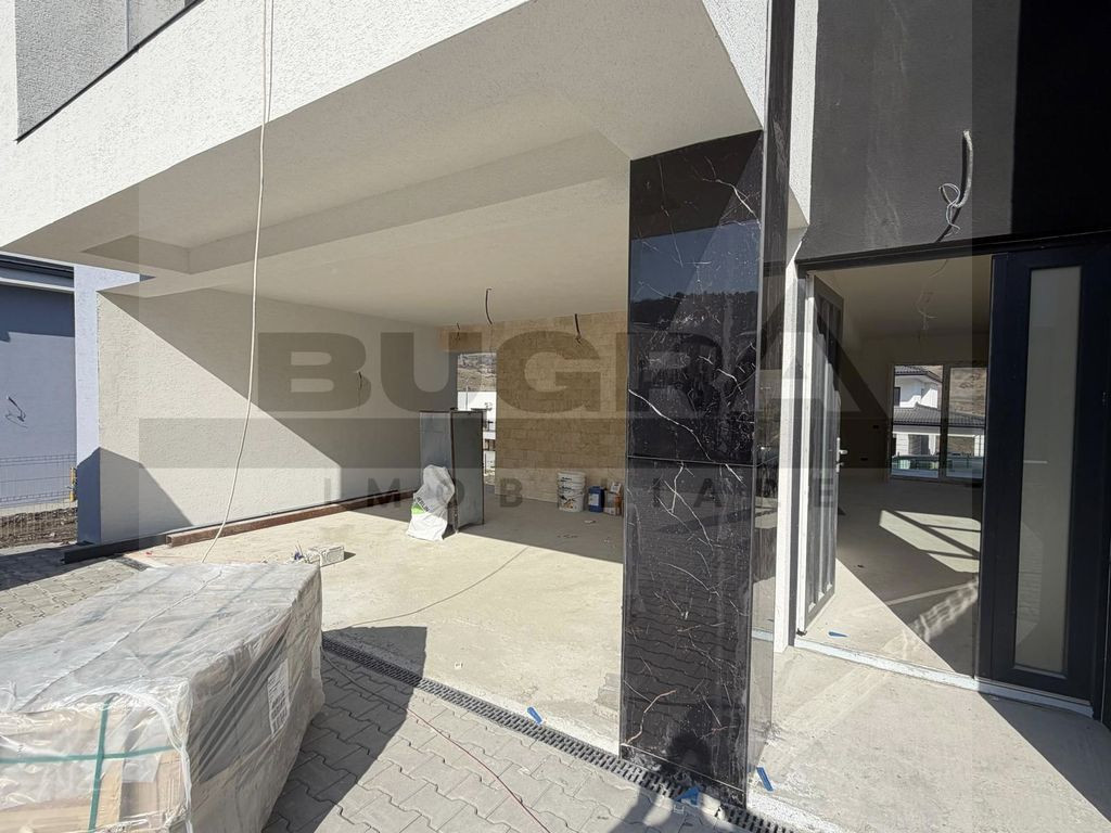 Bugra Imobiliare vă prezintă un proiect rezidențial exclusivist, conceput pentru cei care își doresc liniște, natură și confort premium, la doar câteva minute de oraș. O proprietate care reușește să combine perfect eleganța unei case moderne cu farmecul unei locații spectaculoase lângă pădure. Fiecare locuință are o suprafață construită de 184 mp și este amplasată pe un teren generos de 716 mp, oferind spațiul ideal pentru o viață confortabilă, cu intimitate și deschidere către natură. Ansamblul este format din opt case individuale, fiecare beneficiind de acces pe drum privat asfaltat, iluminat public și sens giratoriu, conceput pentru un trafic facil și sigur. Un element cu adevărat special al proiectului este parcul privat de aproximativ 500 mp, destinat exclusiv rezidenților, un loc unde copiii se pot juca în siguranță, iar serile de vară pot fi petrecute în liniște, într-un cadru verde și relaxant. Locuințele sunt construite cu accent pe calitate și eficiență energetică: • încălzire în pardoseală pe ambele niveluri • tâmplărie premium Rehau • acoperiș cu țiglă metalică Bilka • izolații și finisaje de calitate superioară • pod izolat cu vată minerală de 20 cm • detalii arhitecturale elegante cu inserții de piatră naturală Pentru un confort complet și costuri reduse pe termen lung, există și opțiunea instalării de panouri fotovoltaice și pompă de căldură, adaptate nevoilor viitorilor proprietari. Compartimentare gândită pentru confortul unei familii moderne Parterul este dedicat zonei de zi și socializării: -Hol de acces -Living generos cu bucătărie open-space -Cămară -Baie -Terasă acoperită de 22,5 mp, perfectă pentru mesele în aer liber -Garaj de 25 mp pentru două mașini, cu acces direct în casă Etajul oferă un spațiu intim și bine organizat: -Hol -3 dormitoare -3 dressinguri -2 băi -Balcon și terasă cu priveliște deosebită asupra zonei verzi Proprietatea beneficiază de toate utilitățile: apă, gaz, curent, canalizare, iar conexiunea la internet și televiziune prin fibră optică este disponibilă. Localizarea este un alt mare avantaj: o zonă superbă, aproape de pădure, cu drum asfaltat până la proprietate, transport public în apropiere și trei căi de acces către Cluj-Napoca – la aproximativ 3,5 km de intrarea în oraș și 8 km de centru. În plus, pentru investitori sau dezvoltări viitoare, există disponibilă și o parcelă de 3511 mp la strada principală, cu proiect pentru pensiune. Această proprietate nu este doar o casă – este un stil de viață, unde liniștea naturii, spațiul generos și proximitatea orașului creează echilibrul perfect între relaxare și dinamica urbană. Dacă vă imaginați diminețile într-o casă luminoasă, cu priveliște către natură și serile petrecute pe terasă, într-un cadru liniștit, Bugra Imobiliare vă invită să descoperiți această proprietate la o vizionare.
