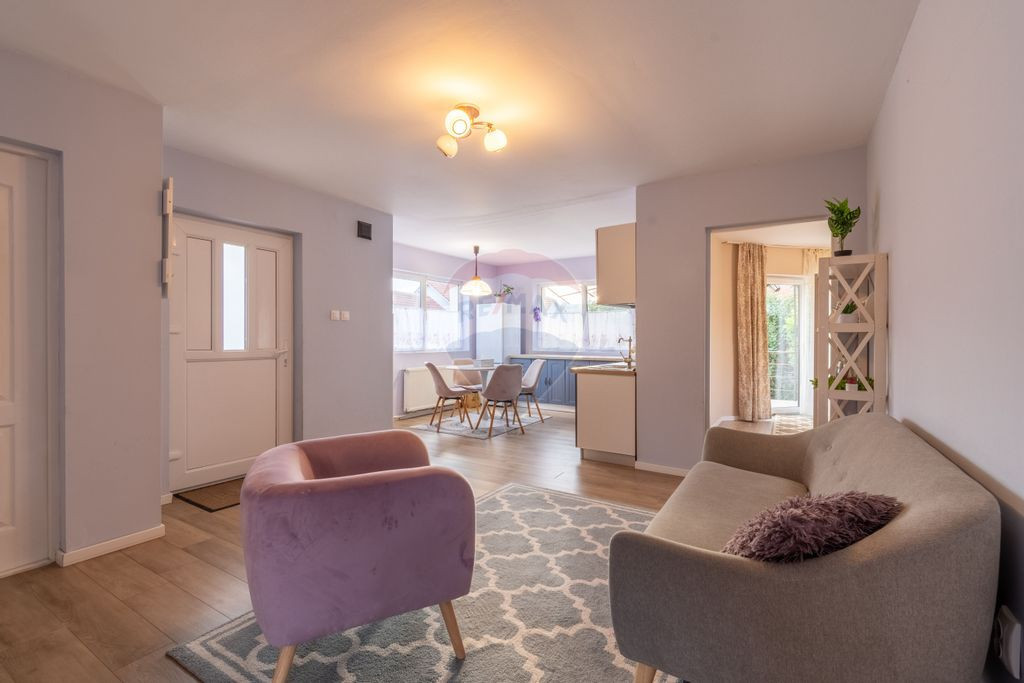 Casă renovată, luminoasă, cu teren generos și garaj dublu – Jucu, zona Panemar Situată pe o stradă privată, liniștită și asfaltată din Jucu de Mijloc, in zona fabricii Panemar, această proprietate oferă confort, intimitate și acces rapid către toate utilitățile — apă, gaz, curent și canalizare. Casa are o suprafață de aproximativ 100 mp și este inteligent compartimentată, oferind un spațiu de locuit primitor și funcțional. Dispune de trei camere, o bucătărie spațioasă, o zonă de zi luminoasă și un garaj dublu,, de 50 mp, perfect pentru două mașini, spațiu suplimentar de depozitare sau un mic atelier Construită în 2006 și renovată complet în 2025, locuința îmbină soliditatea construcției originale cu finisaje moderne și atenție la detalii. Ferestrele mari asigură o lumină naturală abundentă, iar terasa acoperită din spatele casei devine locul ideal pentru relaxare în orice anotimp. Terenul are o suprafață de 593 mp, cu un front generos de 25 m, oferind posibilitatea extinderii sau amenajării unei grădini spectaculoase. Accesul se face prin poartă automată, iar în spatele casei se află o zonă verde cu vegetație matură, care oferă intimitate și umbră plăcută în zilele de vară. Această proprietate este alegerea ideală pentru o familie care caută liniște, spațiu și confort, la doar câteva minute de Cluj-Napoca.