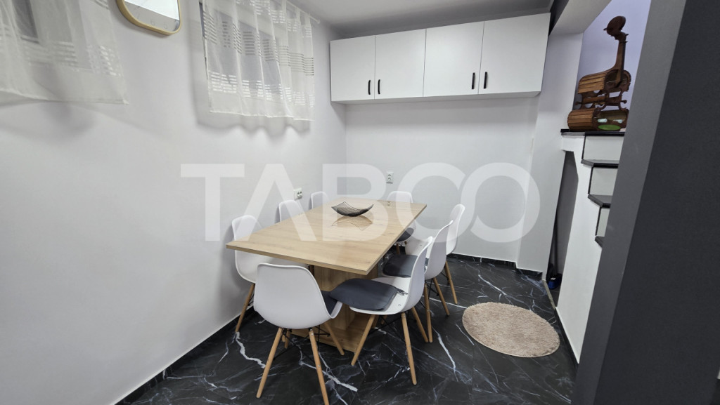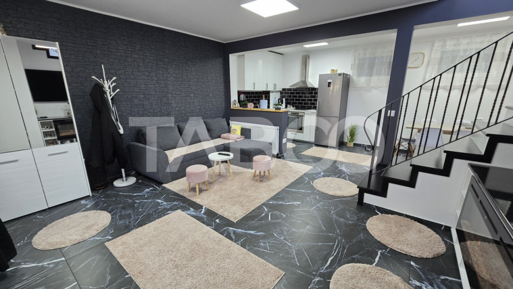 Doresti sa achizionezi o locuinta? Vrei o casa cu 4 camere in Sibiu? Aceasta casa de vanzare cu 4 camere in zona Selimbar, Sibiu este alegerea potrivita pentru tine si familia ta. Casa de vanzare cu 4 camere din zona Selimbar, Sibiu are suprafata construita de 119 mp si suprafata utila a casei de 89 mp. Structura cladirii este din caramida, are sistem de incalzire cu centrala proprie, incalzire pardoseala, calorifere si dispune de izolatie termica la exterior. Casa a fost consturita in anul 2020 si renovata in anul 2023. Casa are un stil modern si elegant si este de vanzare complet mobilata si utilata. Imobilul are o curte libera de 71 mp cu 1 loc de parcare, spatiu pentru zona de joaca a copiilor, terasa frumos amenajata si zona de grill. Casa dispune de sistem de supraveghere video. Imobilul este situat in apropiere de statii de transport in comun si zone comerciale. Casa din zona Selimbar, Sibiu este compartimentata astfel: ~ Parter: living cu bucatarie tip open-space si zona de dining; baie, loc de depozitare sub scari si terasa; ~ Mansarda: hol, 3 dormitoare, baie, balcon; ~ Pod depozitare. Finisajele interioare sunt moderne: ~ Usa intrare: pvc; ~ Usi interioare: celulare; ~ Tamplarie ferestre: pvc, termopan; ~ Podele: parchet, gresie; ~ Finisaj: finisat; ~ Pereti: vopsea lavabila, faianta. Casa se vinde complet mobilata si utilata dupa cum reiese din poze. Pret: 285.000€ Cod ofertă / ID: P25682 Sună-ne acum la 0369.822.820 și află detalii despre această proprietate de vanzare din Sibiu, dar și despre alte proprietăți potrivite pentru tine. Informatii speciale: 1. Descarcă aplicația pe mobilul tau "TABOO Imobiliare" din Apple Store, Google Play sau Huawei AppGallery pentru a afla instantaneu noile proprietăți care intră pe piață. 2. Dacă ai o proprietate pe care vrei să o vinzi sau să o închiriezi, suntem aici pentru tine! Contactează-ne pentru o evaluare gratuită fără obligații și vei descoperi avantajele de a lucra cu o echipă dedicată și experimentată. 3. Dacă vrei sa incepi o cariera de agent imobiliar, suna la 0369.822.820 si programeaza o intalnire pentru a afla toate beneficiile si avantajele. Intră pe TABOO.ro și descoperă cele mai recente oferte, actualizate zilnic. Anunt actualizat in 15 decembrie 2025. Id intern: P25682