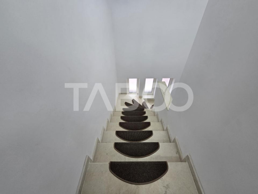 TABOO Imobiliare propune o casa individuala de vanzare in zona Selimbar din Sibiu, aflata pe un teren in suprafata de 852 mp, cu un front stradal de 26 mp, curte libera de 707 mp, accesul auto realizandu-se pe o poarta electrica din aluminiu, dispunand de 6 locuri de parcare. Casa este construita in anul 2020, pe structura din caramida, avand regimul de inaltime P+E+Pod, cu o suprafata utila de 166 mp fiind compusa la parter din hol, camera tehnica, debara, bucatarie inchisa mobilata si utilata cu electrocasnice de cea mai buna calitate, un living luminos cu iesire pe terasa si in curtea din spate, hol, baie cu geam de aerisire, dormitor cu iesire pe terasa si in curte si scarile care fac accesul spre etaj. Etajul este compus din hol, 3 dormitoare dintre care unul cu dressing, o baie mare cu cada si geam de aerisire si scarile care fac accesul spre pod, care este necompartimentat si poate fi folosit ca spatiu pentru depozitare. Incalzirea se realizeaza prin pompa de caldura si termosemineu cu incalzire in pardoseala. Casa este izolata termic cu vata bazaltica de 15 cm, are acoperis din tigla Bramac, beneficiind si de panouri fotovoltaice cu o putere de 6 kw si contract de prosumator. Casa se vinde mobilata si utilata cu masina de spalat rufe, uscator de rufe, masina de spalat vase, plita electrica, cuptor, hota, frigider cu congelator, tv. Finisajele interioare sunt moderne, avand usa de termopan la intrare, usi interioare din lemn de stejar, tamplarie ferestre din pvc cu termopan Salamander cu 3 foi de sticla, podele cu parchet si piatra naturala, iar peretii cu vopsea lavabila si faianta. Curtea din fata este pavata, iar in partea din spate partial este pavata, in rest fiind gazon si o terasa acoperita de 40 mp, cu zona de gratar, un loc perfect pentru petrecut timpul in familie si cu prietenii cat si de gradinarit pentru cei pasionati, curtea mare si gradina permitand acest lucru. De asemenea casa beneficiaza si de un put cu apa folosita pentru irigarea gazonului, sistem de supraveghere video cat si de curent trifazic. Se accepta ca si modalitate de plata surse proprii sau credit bancar. Pret: 545.000€ Cod ofertă / ID: P25737 Sună-ne acum la 0369.822.820 și află detalii despre această proprietate de vanzare din Sibiu, dar și despre alte proprietăți potrivite pentru tine. Informatii speciale: 1. Descarcă aplicația pe mobilul tau "TABOO Imobiliare" din Apple Store, Google Play sau Huawei AppGallery pentru a afla instantaneu noile proprietăți care intră pe piață. 2. Dacă ai o proprietate pe care vrei să o vinzi sau să o închiriezi, suntem aici pentru tine! Contactează-ne pentru o evaluare gratuită fără obligații și vei descoperi avantajele de a lucra cu o echipă dedicată și experimentată. 3. Dacă vrei sa incepi o cariera de agent imobiliar, suna la 0369.822.820 si programeaza o intalnire pentru a afla toate beneficiile si avantajele. Intră pe TABOO.ro și descoperă cele mai recente oferte, actualizate zilnic. Anunt actualizat in 9 ianuarie 2026. Id intern: P25737