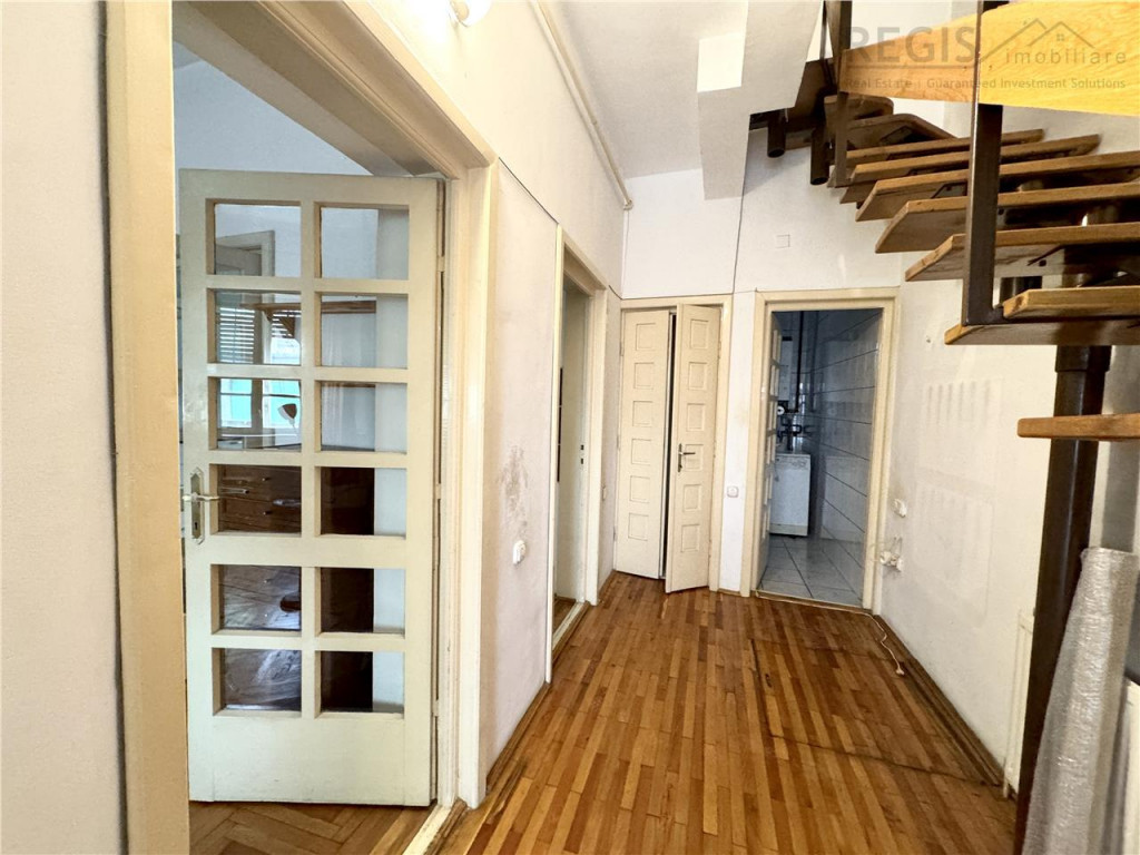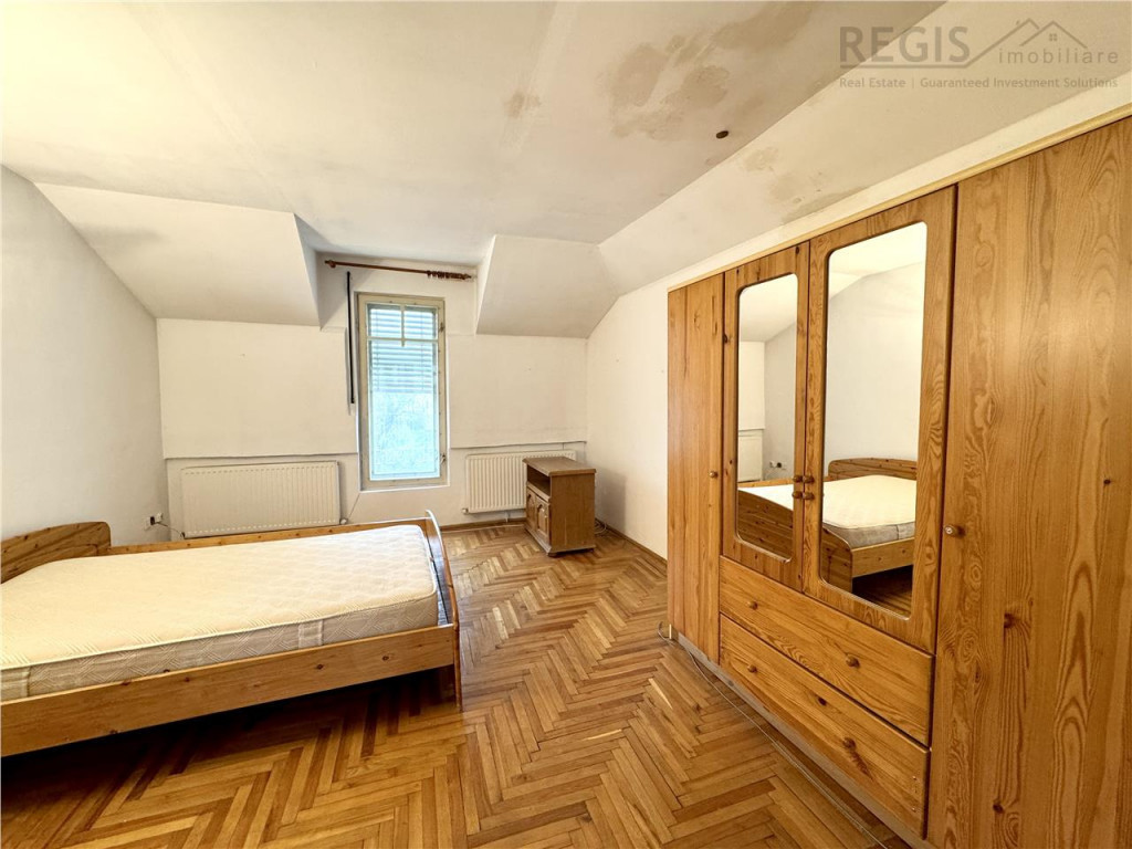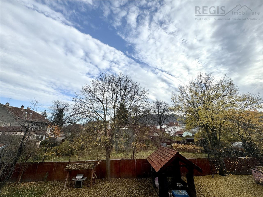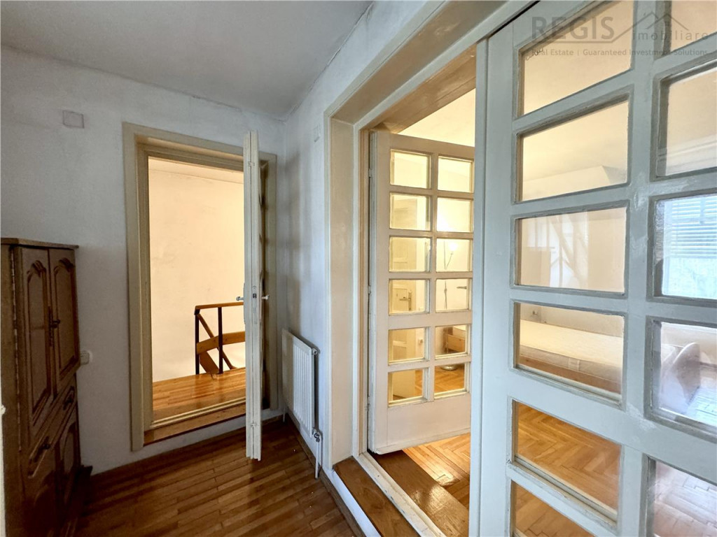 ID intern: 6193 REGIS Imobiliare va propune spre vanzare o casa aproape de centrul Brasovului, situata pe strada Nicopole. Locuinta are un farmec aparte, detaliile sale arhitecturale originale ndash; pardoseala din lemn masiv, usile interioare vitrate si ferestrele largi, ce ofera lumina naturala si o atmosfera calda, primitoare. Desi necesita lucrari de renovare si modernizare, casa are un potential deosebit pentru cei care doresc sa isi puna amprenta personala si sa imbine caracterul autentic si confortul contemporan. Compartimentare: Parter: - living (19 mp) - bucatarie (16 mp) - baie (3.5 mp) - camara - hol si vestibul Etaj: - dormitor (18 mp) - o camera ce poate avea multiple destinatii: dressing, birou sau o zona de recreere (7 mp) - baie (4.7 mp) - hol - un balcon spatios (9 mp) Suprafata utila: 103 mp Suprafata totala: 135 mp Proprietatea nu dispune de curte individuala, insa ofera o perspectiva placuta asupra mediului natural din vecinatate. Anexe: pod util si pivnita cu bolta de caramida, ideale pentru depozitare sau amenajari suplimentare. In apropiere: supermarket (Kaufland), restaurante, cafenele, statie de autobuz, scoli, gradinite. Pretul imobilului este negociabil; Comisionul agentiei este de 2% TVA din valoarea tranzactionata. Pentru mai multe detalii si vizionari: 0774 994 172; Va asteptam cu drag la vizionare!