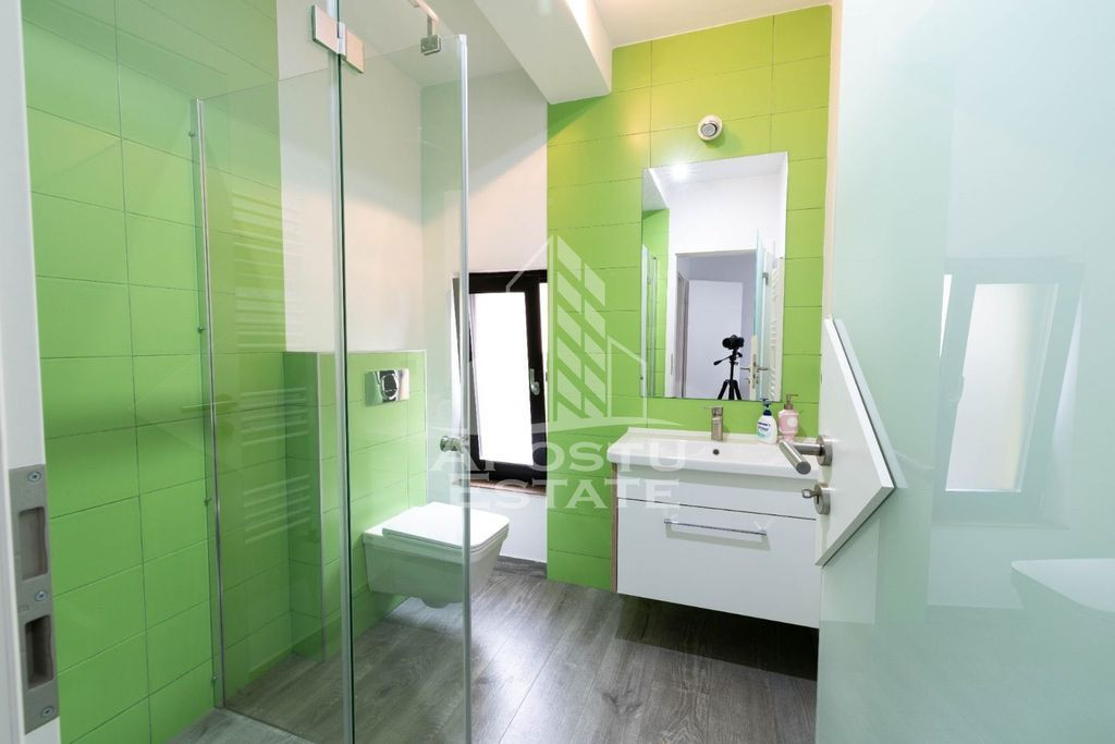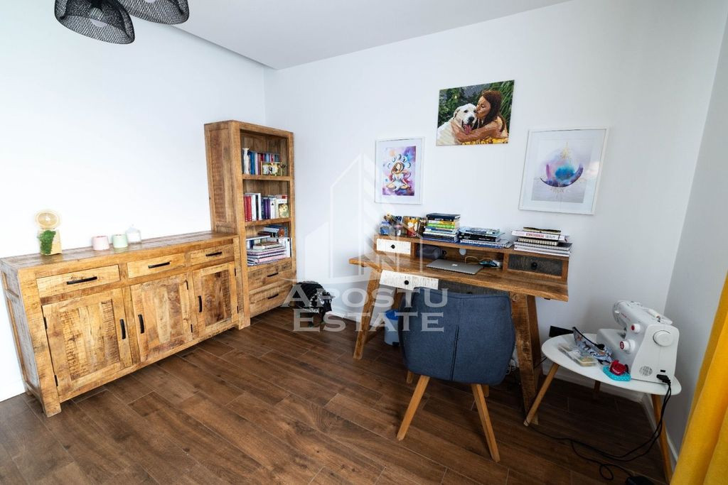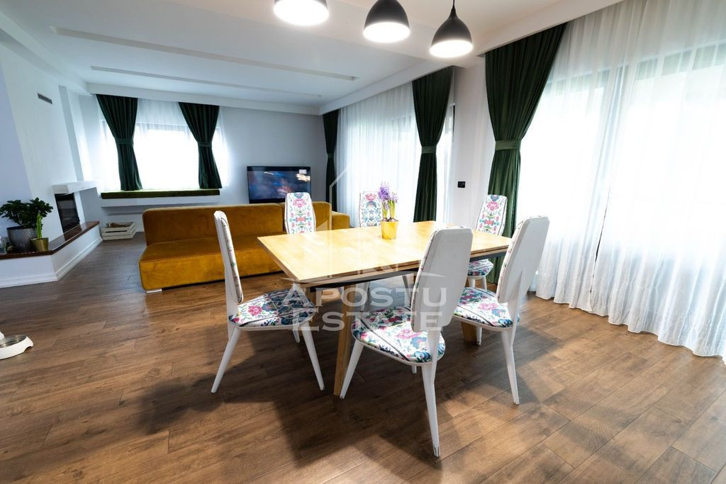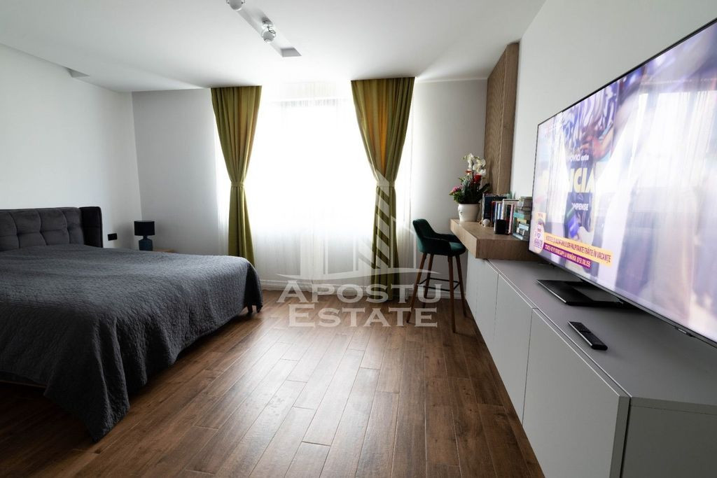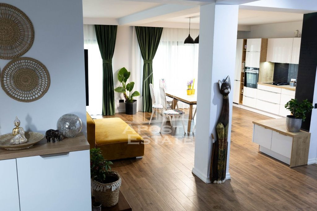 APOSTU ESTATE are placerea de a va propune spre vanzare o casa individuala cu 5 camere, regim de inaltime P+ 1E, localizata in Dumbravita. Proprietatea are o suprafata utila de 184 mp, cu o terasa inchisa de 22 mp, si este amplasata pe un teren de 879 mp. Compartimentare parter: - hol de acces, zona deschisa cu living open space si bucatarie, birou, baie, camera tehnica, garaj. Compartimentare etajul 1: - hol de acces, dormitor matrimonial, dressing, dormitor cu acces la banconul deschis si 2 bai. Casa dispune si de o mansarda amenajata de 81 mp utili care este dotata cu incalzire in pardoseala. In interiorul proprietatii amenajarile sunt armonios echilibrate, cu o atentie meticuloasa la detalii; sunt folosite materiale calitative, iar mobilierul este realizat la comanda. In exteriorul proprietatii regasim o oaza de liniste, un teren generos si atent creionat, cu o gradina amenajata pentru pomicultura ecologica, pomi fructiferi, plante decorative si o casuta din lemn pentru depozitarea sculelor. Sistemul de irigare se regaseste atat in gradina generoasa, cat si in fata casei. Sistemul de incalzire al casei este realizat prin intermediul centralei proprii pe gaz (incalzire in pardoseala) si a aparatului de aer conditionat. De asemenea, casa dispune si de panouri solare care au o capacitate de 10 kw/ora ceea ce iti ofera independenta energetica la toate electrocasnicele si aparatele electrice din casa, inclusiv la cuptorul si plita electrica. Casa este echipată cu un invertor hibrid, ceea ce va permite sa produceti energie solara si sa fiti prosumatori. Astfel, energia in exces produsa este injectata in retea, generand un venit constant an de an. Proprietatea se va vinde complet mobilata si utilata. Fiind amplasata intr-o zona linistita, dar si in continua dezvoltare, la asfalt si cu toate utilitatile necesare, proprietatea este una de exceptie si isi asteapta noul proprietar. Acceptam orice tip de credit bancar. Oferim consultanta si solutii financiare prin colaboratorii nostri. Va asteptam cu drag la o vizionare chiar astazi!