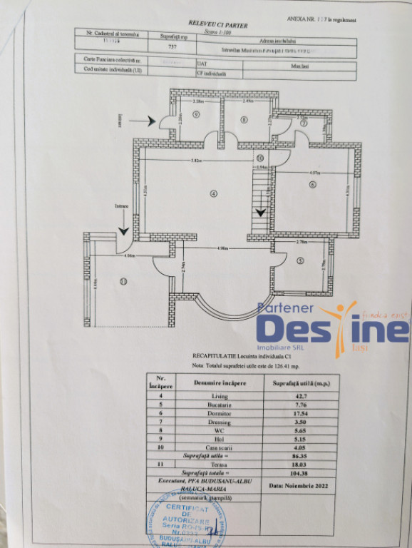 DESTINE IMOBILIARE vă prezintă spre vânzare: Casă individuală cu 3 (4) camere + anexe - BUCIUM, Plopii fără Soț Preț: 250.000 €uro Informatii utile despre proprietate: - Imobil edificat in anul 2023 - Etaj DEMISOL + PARTER - Suprafață utilă totală de 145 mp - 3 camere (posibilitate 4), 2 băi, 2 bucătării, dressing, anexe Avantajele locuinței: - racordată la TOATE UTILITĂȚILE - centrală termică proprie - tâmplărie cu geam termopan - AER CONDIȚIONAT pentru zile călduroase - 2 băi CU GEAM pentru aerisire naturală - dormitor cu dressing, comod si util - BUCĂTĂRIE de VARĂ, mobilată și utilată - magazie suplimentară pentru depozitare - CURTE AMENAJATĂ si decorată Casa este situată in Bucium, lângă PLOPII FĂRĂ SOȚ, la doar 1 km de Sos. Bucium. A fost gândită, proiectată și construită in regim propriu, pentru confortul personal. Nu necesită investiții, documentația este la zi iar vânzarea poate fi făcută imediat. Programează o vizionare la: 0736.84.84.88 - Toni Galu Cod ofertă: P-3944 IMPORTANT: Soluții de creditare simplificate Simplifică-ți procesul de obținere a unui credit! Brokerul nostru te ajută gratuit să găsești cea mai bună soluție, fie că ai nevoie de un credit ipotecar, Prima Casă sau un credit de nevoi personale. Contactează-ne pentru asistență personalizată și detalii complete. Id intern: P3944