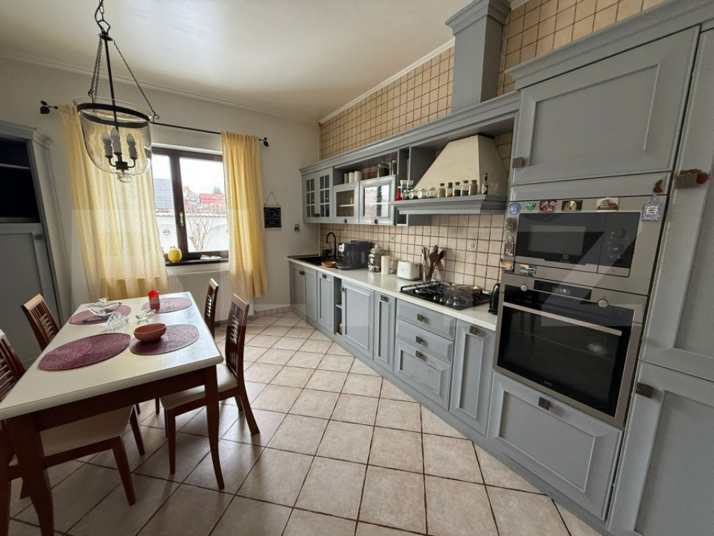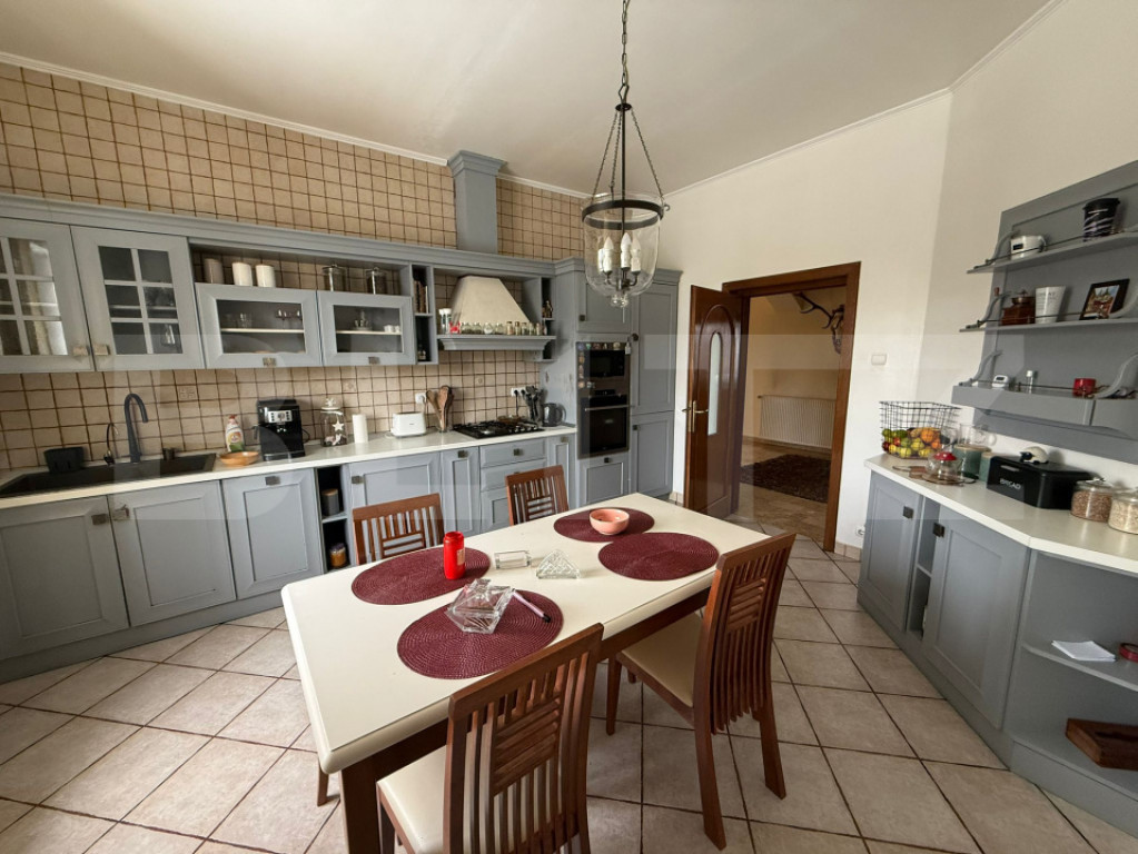 Accesul stradal se realizează printr-un front stradal de 5 ml, care se deschide către un teren superb, perfect proporționat, de 50 m x 50 m. Locuinta este complet utilata si mobilata cu dotari premium,suprafata utila de 410 mp, 8 camere, 1 bucatarie,3 dormitoare,3 bai, pivnita, garaj, 3 terase,foisor inchis