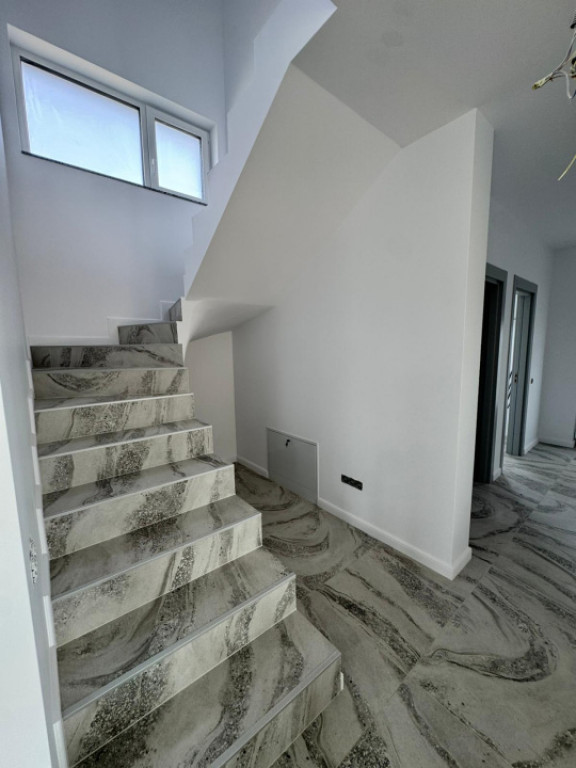 Blitz vă propune spre vânzare o casă individuală modernă, situată într-o zonă liniștită, cu acces privat, parte dintr-un ansamblu de 3 locuințe. Construită cu materiale de calitate și atenție la detalii, proprietatea oferă confort, eficiență și siguranță, fiind clasificată energetic în clasa A. ???? Stadiu actual: casa se află în prezent la nivelul de semifinisat, însă se predă complet finisată, la cheie, gata pentru mutare. ⸻ ✅ Detalii tehnice: • Suprafață utilă: 118 mp • Teren: 420 mp • Regim: P + E • Clasă energetică A • Izolație exterioară 15 cm • Izolație sub placă + polistiren 3 cm sub șapă • Încălzire în pardoseală pe toată suprafața casei • Izolație mansardă 70 cm • Tâmplărie PVC cu geam termopan tripan • Curent trifazic (380V) – ideal pentru stație de încărcare auto electrică • Acoperiș din tablă fălțuită (o singură bucată) ⸻ ✅ Finisaje incluse în preț: • Parchet montat integral • Uși interioare moderne • Băi complet utilate cu obiecte sanitare de calitate • Pereți finisați și vopsiți • Instalație electrică completă (148 prize, întrerupătoare, candelabre montate) ⸻ ✅ Compartimentare: Parter: living open space cu bucătărie, baie, cameră tehnică, terasă spațioasă și acces către garaj. Etaj: 3 dormitoare – unul matrimonial cu dressing și baie proprie, doua doar cu baie fiecare dormitor beneficiază de balcon ⸻ ✅ Exterior: Curtea se predă complet amenajată, cu gazon, alei pietruite cu griblură, împrejmuire finalizată și acces pe drum privat. ⸻ Această casă reprezintă alegerea ideală pentru cei care își doresc o locuință nouă, modernă, eficientă energetic și pregătită pentru mutare imediată. Cod ofertă / ID BLITZ: P155279 Id intern: P155279