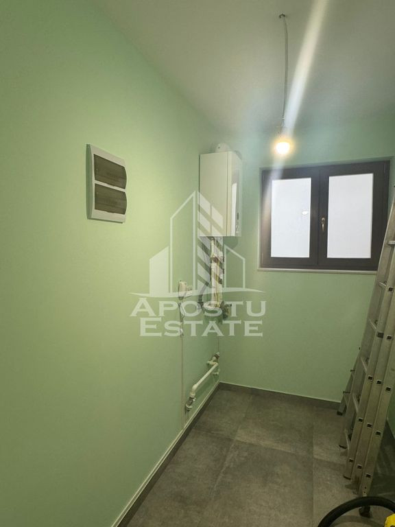 Apostu Estate va ofera spre vanzare o casa individuala ,ridicata pe regim de inaltime P pe un teren de 519mp, in Ghiroda, la doar cateva minute de oras. Casa dispune de o suprafata de 131mp utili si este compartimentanta astfel: -hol de acces - living spatios cu tavan inalt - bucatarie inchisa complet utilata si mobilata - 3 dormitoare din care 1 cu baie proprie - baie ce dispune de casa - camera tehnica (loc de depozitare) - terasa acoperita de 24mp Dotari: Constructie noua din caramida, avand acoperis de tigla si tamplarie PVC cu geamuri termopan in trei straturi cu sticla si rulori exterioare actionate electric prin telecomanda Utilitati: apa, gaz, curent si canalizare. Incalzirea se realizeaza prin intermediul centralei pe gaz prin pardoseala cu termostate de ambient in fiecare camera. Curtea este imprejmuita cu gard de beton si pavata cu travertin, are deschidere mare avand posibilitatea de a parca in curte. dispune de carport si poarta acces auto actionata prin telecomanda. Casa este noua, nelocuita si se vinde partial mobilata, precum se vede in poze. Va oferim consultanta si solutii financiare prin colaboratorii nostrii! Va asteptam cu drag la o vizionare! ID intern: CP2830413