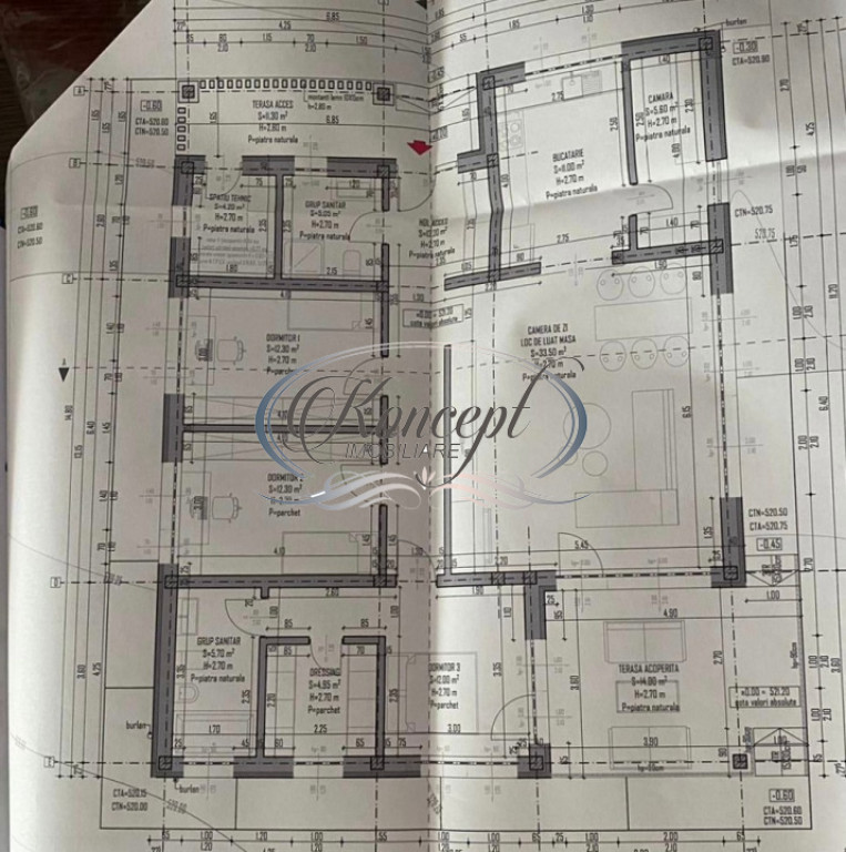 Koncept Imobiliare ofera spre vanzare o casa individuala in Popesti Deal, pozitionata intr-o zona retrasa, aproape de padure si de Biserica Sfanta Treime. Ansamblul format din 3 locuinte asigura intimitate si un cadru de viata linistit, departe de agitatia urbana, dar cu acces rapid catre principalele puncte de interes din imprejurimi. Casa este dispusa pe un singur nivel, cu suprafata utila de 120 mp si teren aferent de 600 mp. Compartimentarea eficienta cuprinde 4 camere luminoase, 2 bai, dressing, spatiu tehnic, bucatarie si hol, alaturi de doua terase generoase de 14 mp si 11 mp. Exista posibilitatea de recompartimentare, adaptand interiorul in functie de nevoile viitorului proprietar. Constructia impresioneaza prin arhitectura mediteraneana si finisaje moderne, de exceptie. Sistemul de incalzire este compus din centrala proprie si incalzire prin pardoseala, asigurand confort sporit pe tot parcursul anului. Exteriorul este complet amenajat cu gard, poarta, pavaj si acoperis Bilka, iar tamplaria Salamander cu trei foi de sticla si banda anti-vapori garanteaza eficienta energetica ridicata. Proprietatea este recomandata ca locuinta de familie, beneficiind de pod spatios pentru depozitare si parcare pentru doua autoturisme. Atmosfera intima si spatiile bine gandite transforma aceasta casa intr-o alegere de durata pentru cei care apreciaza echilibrul dintre confort si natura. Pentru informatii complete, programarea unei vizionari sau pentru a afla oferta noastra completa va stam la dispozitie telefonic, prin e-mail sau la sediul agentiei noastre, pe str. Aviator Badescu, nr. 19, Cluj-Napoca. Id intern: P20740