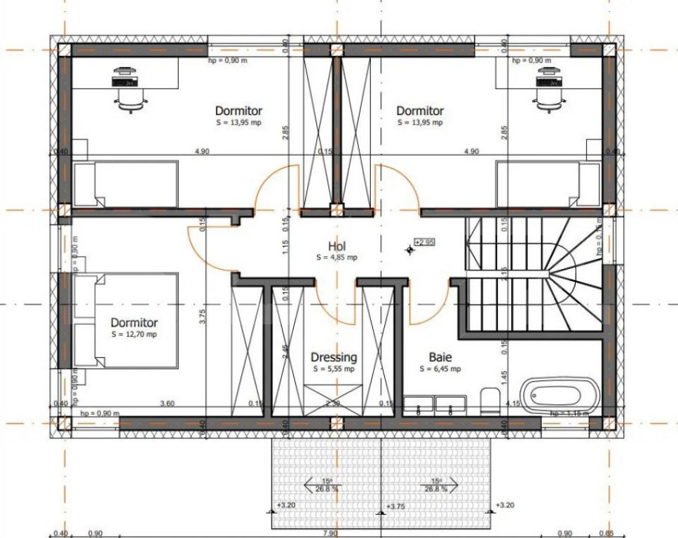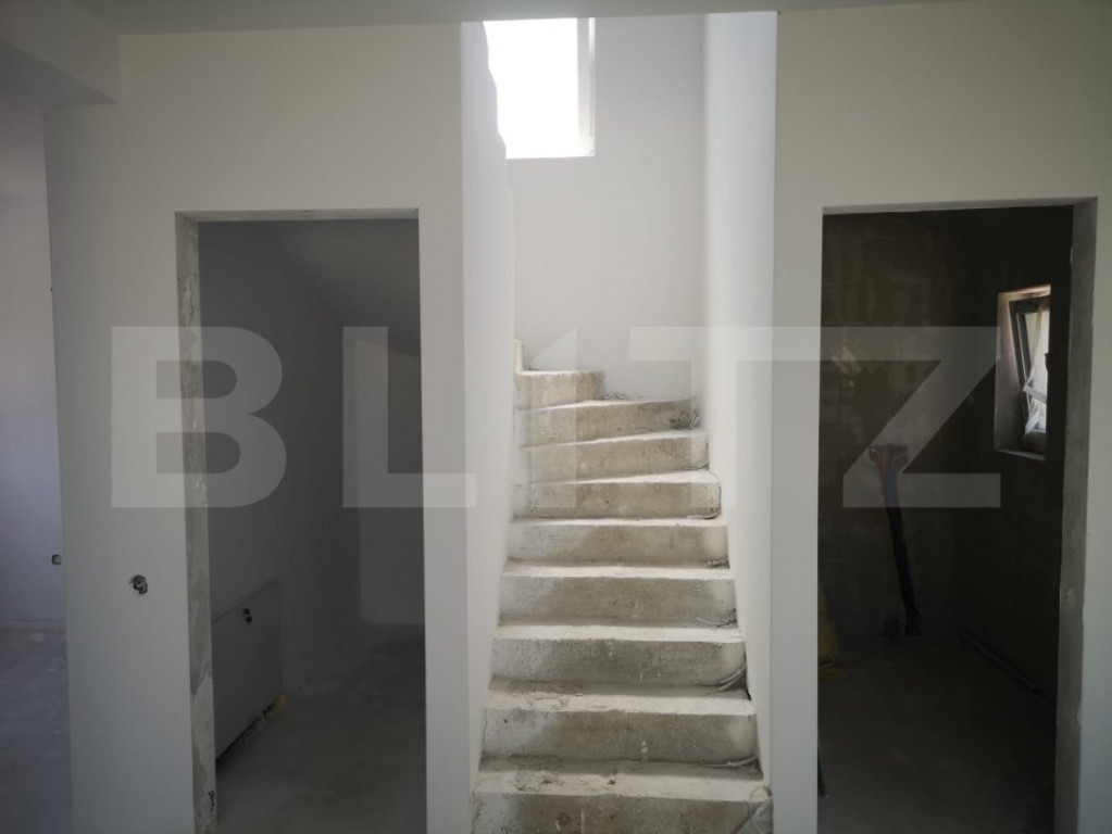 BLITZ îți propune spre vânzare o casă individuală in curs de edificare, aflată la marginea pădurii, într-un cartier rezidențial nou, compus exclusiv din case, în Dezmir – locul ideal pentru cei care apreciază liniștea, intimitatea și aerul curat. Informații esențiale: Suprafață utilă: 119 mp - Teren: 438 mp - Predare: Toamna 2025 (casa este în curs de edificare) - Acces facil: stradă asfaltată, transport rapid spre oraș - Compartimentare practică, pe două niveluri: Parter: Living generos, Bucătărie, Baie, Cămară, Spațiu de depozitare sub scară Etaj: 3 dormitoare, Baie, Dressing spațios Pod înalt (2.20 m pe coamă) – ideal pentru depozitare suplimentară Dotări și finisaje: - Geamuri tripan - Izolație exterioară cu polistiren de 15 cm - Încălzire în pardoseală – confort termic ridicat - Pereți finisați cu lavabil – gata pentru personalizare - Toate utilitățile: curent trifazic, gaz, apă, canalizare Avantaje locație: - Cartier nou, exclusiv de case - Zonă liniștită, în apropierea pădurii – ideală pentru plimbări și relaxare - Comunitate modernă, liniștită, perfectă pentru familii Dacă îți dorești o casă modernă, bine compartimentată, într-un cadru natural și totuși aproape de oraș, aceasta este alegerea ideală. La achizitia pe persoana fizica se adauga TVA de 21% ( pret: 213.000 euro )! La achizitia pe firma se aplica taxare inversa! ???? Contactează-ne pentru mai multe detalii sau pentru a programa o vizionare! Cod ofertă / ID BLITZ: P144662 Id intern: P144662