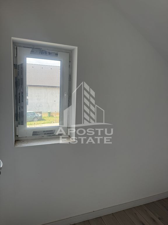 Apostu Estate va ofera spre vanzare casa individuala in Giarmata Mare,pozitie foarte buna la doar 2 minute de drumul cu patru benzi.Constrctie 2023 noua,finisata modern cu materiale de calitate,ridicata pe regim de inaltime P+M,imprejumita cu gard din placi de beton si curtea pavata.Posibilitate de a parca atat in curte cat si in fata proprietatii.