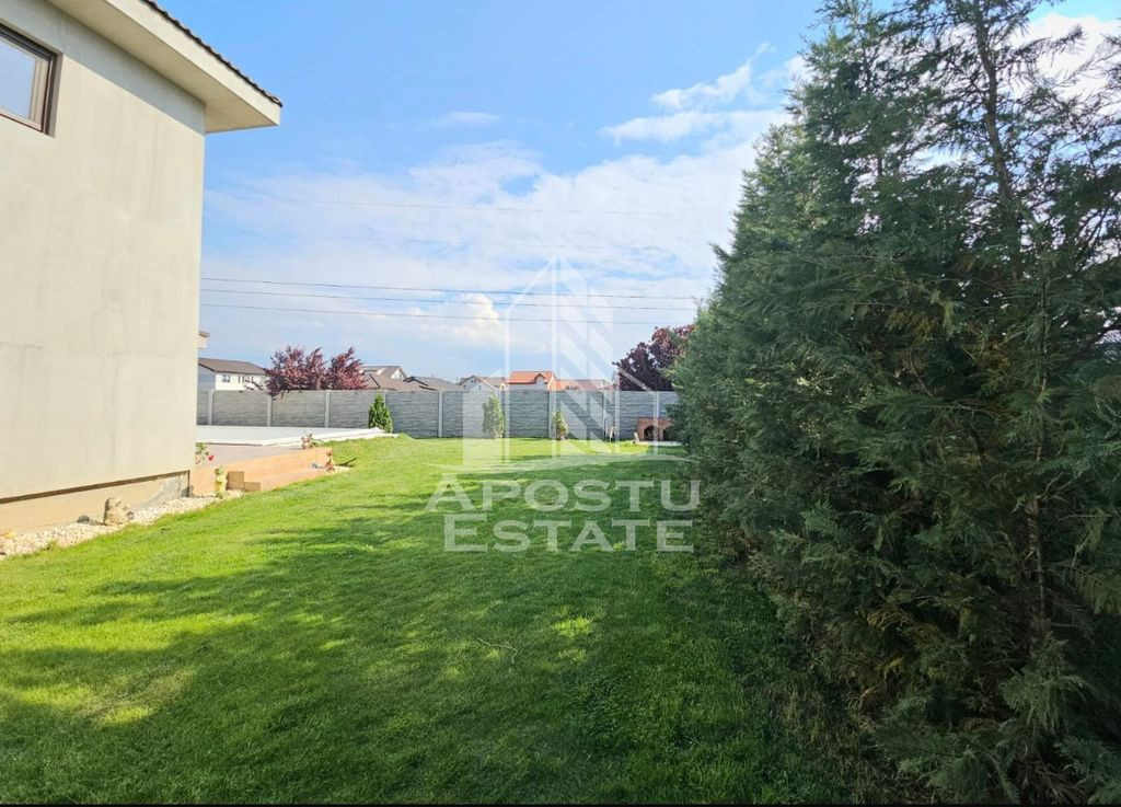 Terasa acoperita,pozitionata chiar aproape de piscina .Curtea este imprejmuita cu gard de beton,ofera intimitate .