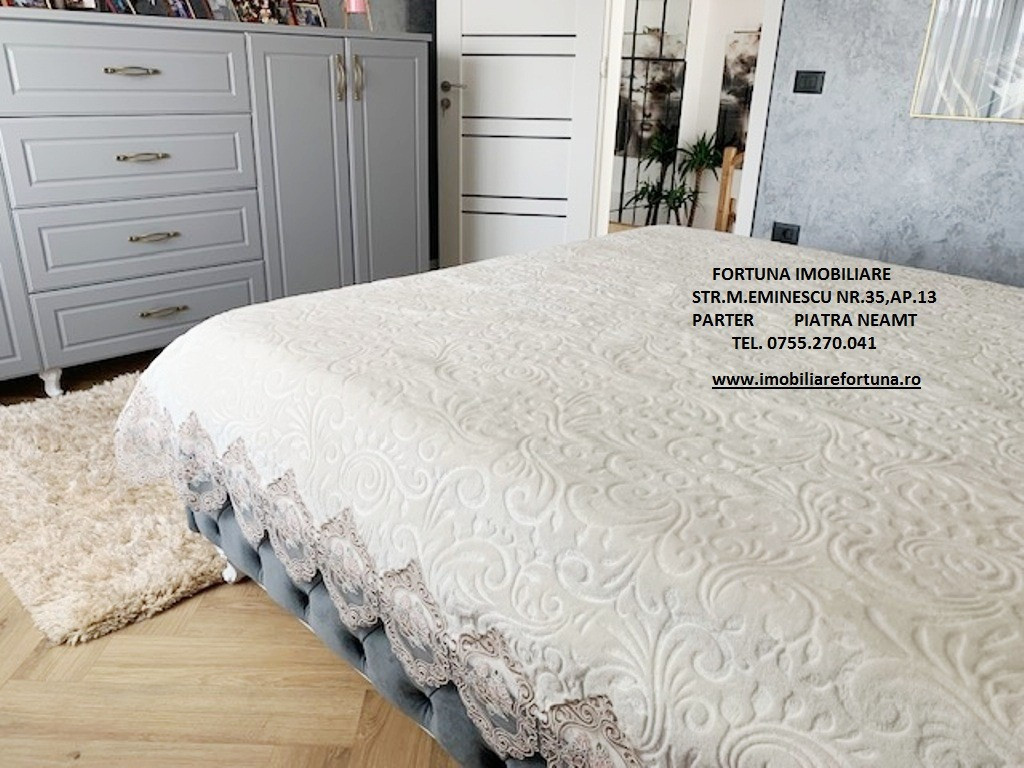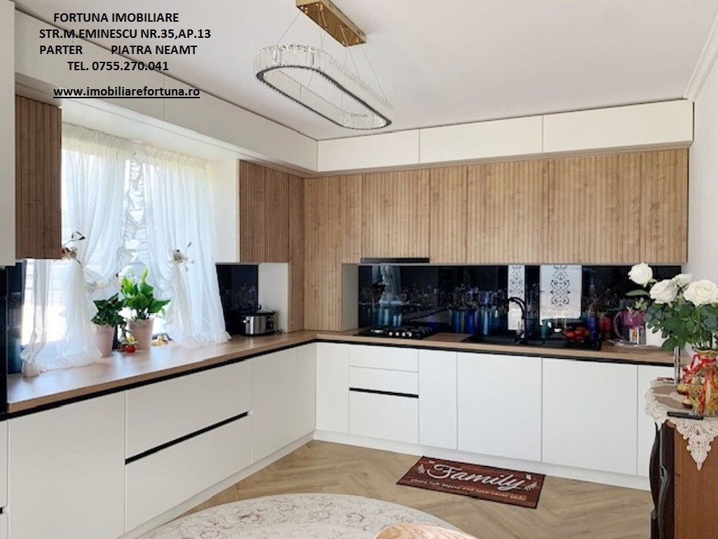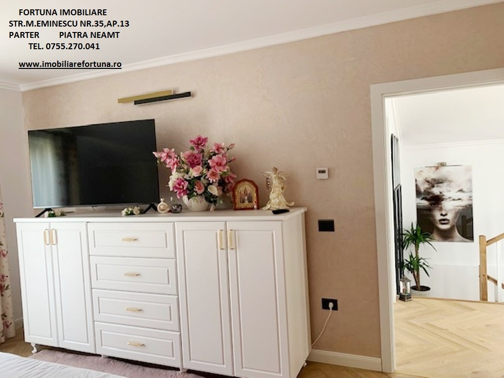 CASĂ INDIVIDUALA ÎN MUNICIPIUL PIATRA NEAMȚ, LA POALELE MUNTELUI PIETRICICA ,265 .000 EURO + TVA Pentru cei care doresc să se bucure de facilitățile urbane, beneficiind totodată de liniște, verde și aer curat, FORTUNA IMOBILIARE propune spre achiziție această proprietate, primitoare, îngrijită, multifuncțională, ce oferă o atmosferă de cămin - căldură, calm si relaxare, un real balsam pentru corp, minte și suflet, situata intr-un cartier rezidential din Municipiul Piatra Neamt. Proprietatea este compusă din suprafața de 400 mp teren, pe care este edificată o casă cu regim de înălțime P+M cu suprafața de 180 mp, construită în anul 2023, pe fundații din beton armat, zidărie din cărămidă, cu termosistem integral pe exterior, acoperită cu tablă profilata Bilka, tâmplărie de termopan ADF de ultima generatie, izolatie cu dublu strat de vata bazaltica in pod, planseul dintre etaje si scara interioara din beton armat. Este luminoasă și foarte călduroasă, fiind prevazuta cu incalzire in pardoseala ( ce ofera confort termic ridicat la costuri reduse ), iar camerele generoase impresionează prin finisajele premium și interiorul rafinat, decorat cu suflet și eleganță. Este compartimentată astfel: La parter: Antreu, living, baie, dressing, bucatarie spațioasă cu iesire in terasa acoperita. La mansarda :hol spatios, baie, 3 dormitoare si balcon tip terasa. Pentru un plus de confort, proprietatea beneficiaza de o terasa exterioara acoperita, foarte generoasa, ideala pentru petrecerea timpului alaturi de cei dragi, in aer liber. Proprietatea este prevăzută cu sistem de alarma si de supraveghere video, de asemenea este conectata la canalizare, apa, gaz, curent ( 220 si 380 ). Curtea este frumos amenajată cu alei betonate, gazon, flori, plante ornamentale. Este imprejmuita cu gard solid prevazut cu inchidere centralizata. Preț 265.000 Euro + TVA Pentru o prezentare detaliată a acestei oferte, furnizarea unor informații suplimentare referitoare la situația juridică / identificarea imobilului și programarea unei vizionări, vă invităm la sediul nostru, Fortuna Imobiliare, situat pe str. M. Eminescu, nr. 35, ap. 13, parter, lângă fostul Tribunal, tel. contact 0755.270.041. Your comfort is our priority ! Oferta noastră completă o găsiți aici: https://imobiliarefortuna.ro/