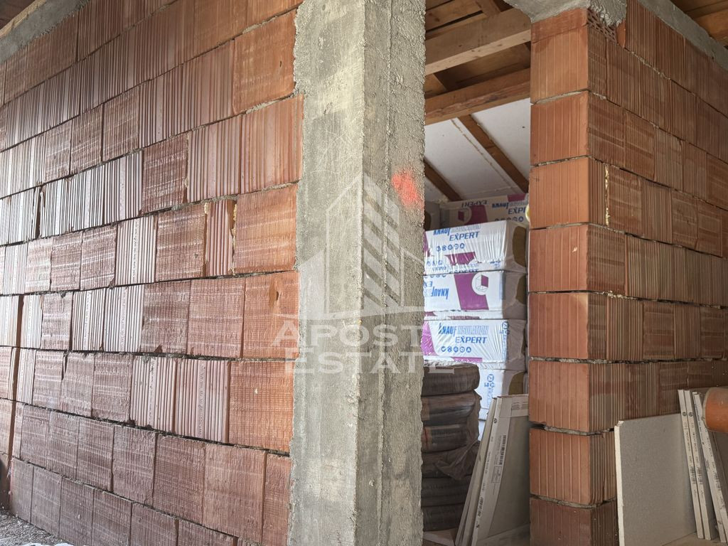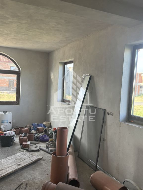 Apostu Estate va ofera spre vanzare Casa unifamiliara in Recas ,pozitionata in zona buna si linistita . Constructie din caramida cu regim de inaltime P+M,avand o suprafata utila de 150 mp,se vinde asa cum se observa in fotografii,in partea de jos stadiul cpndtructiei fiind la gri-alb si mansarda la rosu. Teren generos de 512 mp,aflat acum in conccesiune ,posibilitate de a prelua concesiunea in continuare sau de a o achizitiona de la primarie . Tamplarie din geam Tripan,acoperis de tigla.In curte dispunde de o platforma mare de beton perfecta pentru un foisor mare. Instalatie electrica trasa in toata casa. Casa dispune de toate utilitatiile:apa.curent trifazic,gaz,canalizare . Compartimentare; Parter: -hol de acces -living -bucatarie inchisa -baie -camera tehnica -dormitor Etaj: -hol de acces -3 dormitoare -1 baie Se accespta orice varianta de creditare,va stam la dispozitie telefonic pentru mai multe detalii. Va asteptam la o vizionare !