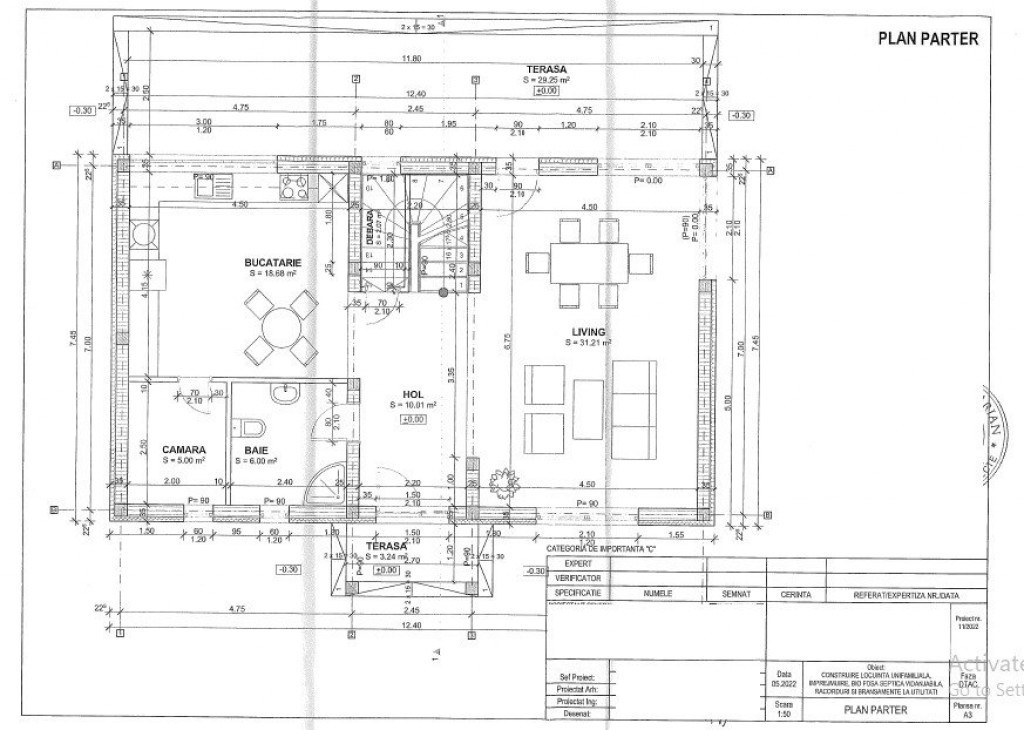 - parte : living spatios cu iesire spre terasa, bucatarie cu camara, zona de dining, baie, camera tehnica.