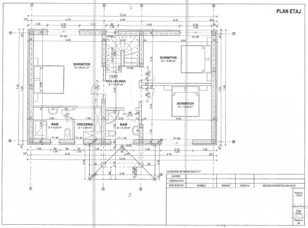 - etaj : 3 dormitoare, 2 bai, 1 dressing, hol