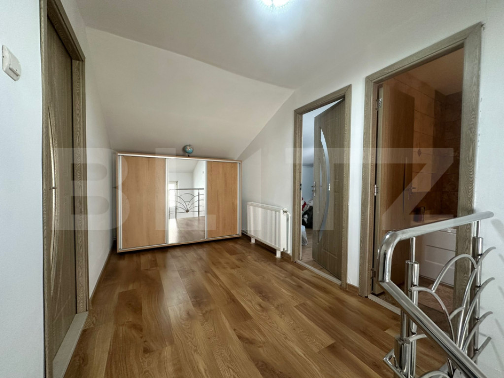 Dacă ai visat vreodată să deschizi dimineața geamul și să vezi munții în loc de blocuri, casa asta e pentru tine. BLITZ îți prezintă o casă care nu încearcă să impresioneze artificial. Te convinge simplu, prin liniște, spațiu și priveliște. La doar 10 minute de Deva, în Măgura, pe o stradă retrasă, fără trafic auto, găsești o proprietate care îți schimbă ritmul vieții. Aici nu auzi claxoane. Auzi pădurea. Vezi munții. Respiri. Casa este individuală, P+M, construită în 2017–2018, solidă, eficientă energetic și gândită corect pentru o familie sau un cuplu care vrea liniște, nu compromisuri. 126 mp utili perfect distribuiți: • Parter: terasă, living cu bucătărie open-space, dormitor, baie cu duș, cămară cu geam, cameră tehnică • Mansardă: hol decomandat, 2 dormitoare, baie cu cadă 2 băi, spații aerisite, lumină naturală, senzația de “acasă” din prima. Dotări care chiar contează: • pompă de căldură + centrală pe lemne (independență și costuri mici) • calorifere • izolație exterioară 10 cm • tâmplărie PVC • canalizare realizată în zonă (urmează racordarea) • urmează și branșarea la apă Teren de 795 mp – suficient cât să-ți faci grădină, foișor, loc de joacă, fără să devină povară. Curte liberă, pregătită să o modelezi cum vrei tu. Priveliștea? Nu e “frumoasă”. E genul de priveliște care te face să nu mai vrei să te întorci la oraș. Este casa pentru cei care: • vor liniște reală, nu “liniște declarată” • vor spațiu, nu apartament mascat • vor calitate, nu improvizații Se accepta schimb cu apartament cu 2 camere in Deva plus diferenta. Cod ofertă / ID BLITZ: P161915 Id intern: P161915