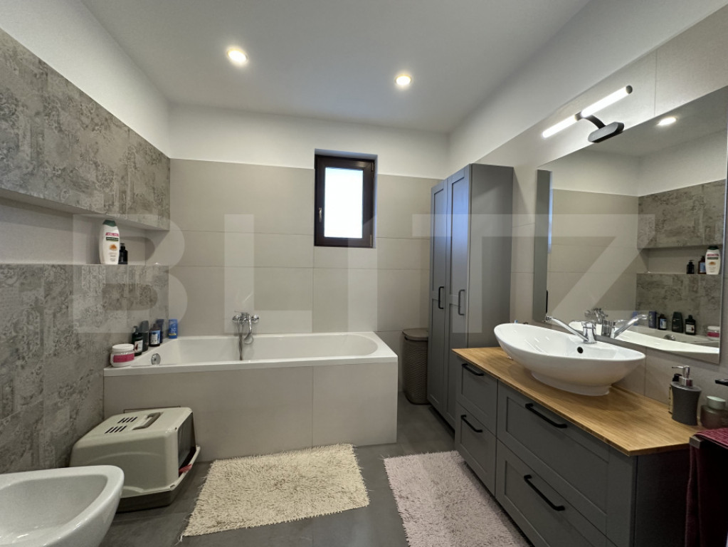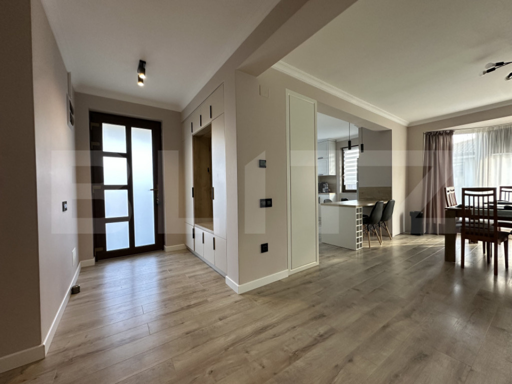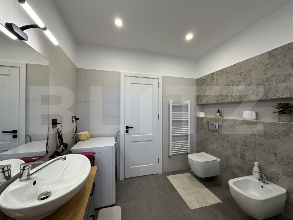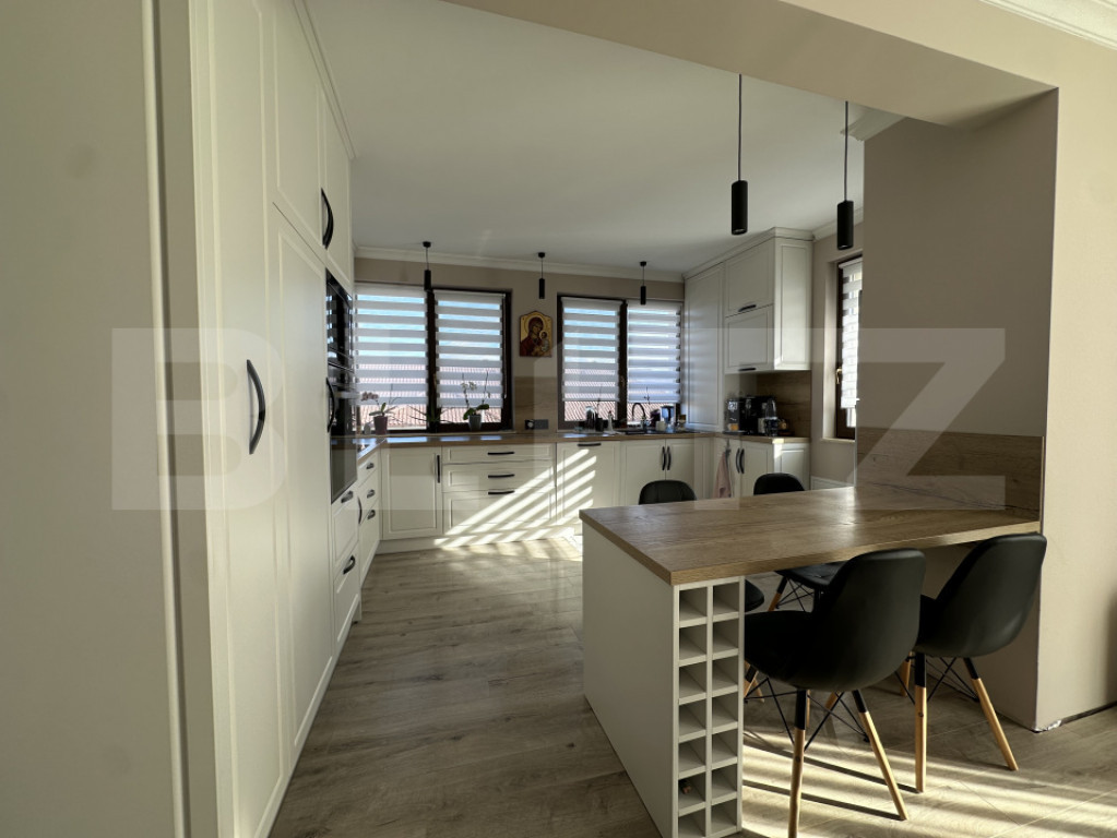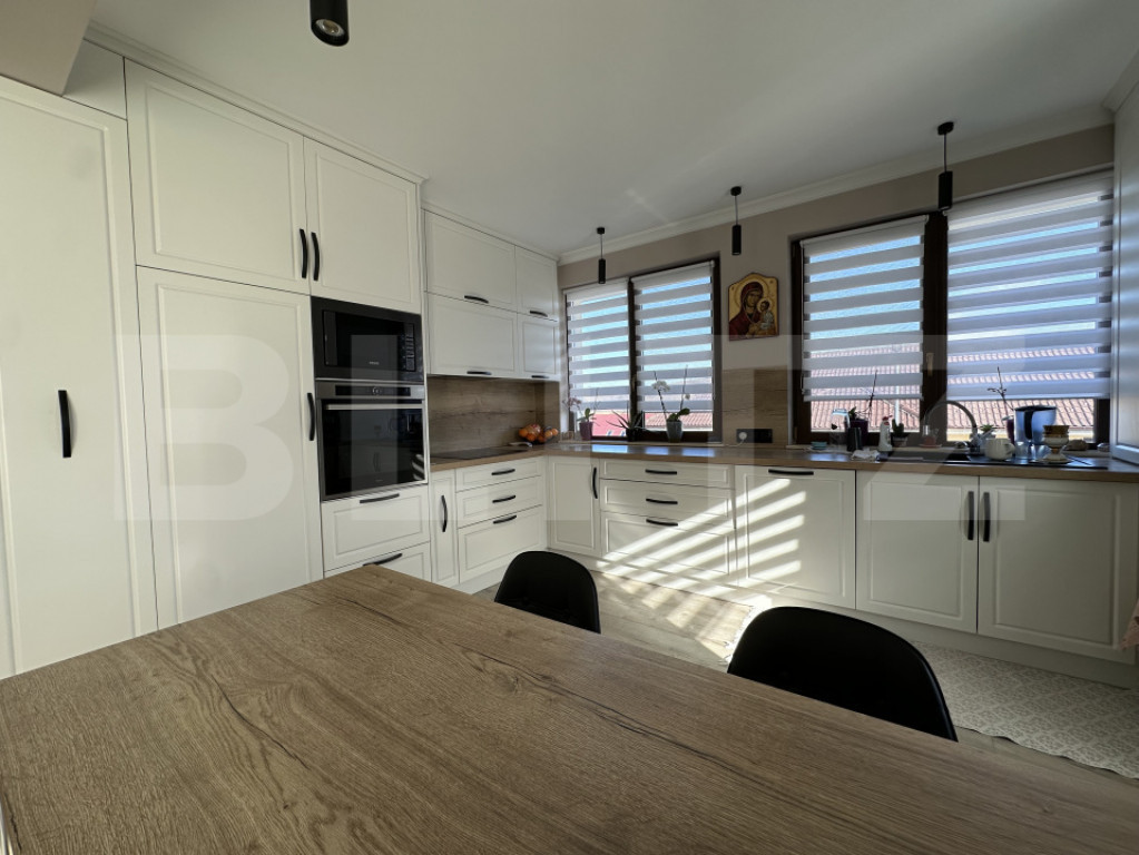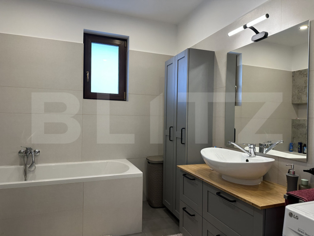 BLITZ vă propune spre vânzare o casă individuală pe un singur nivel, situată în sat Corușu, la doar 10 minute cu mașina de LIDL Baciu (Cluj-Napoca) – ideală pentru cei care își doresc liniștea naturii, fără a renunța la accesul rapid către oraș. Proprietatea este amplasată pe un teren de 500 mp, cu front stradal generos de 25 ml oferind astfel spațiu suficient pentru relaxare, petrecerea timpului în aer liber cat și locuri de parcare amenajate. Construcție și compartimentare: Casa este construită pe fundație din beton, cu zidărie din cărămidă și acoperiș din lemn acoperit cu țiglă de beton. Compartimentarea este modernă și eficientă, gândită pentru confort și funcționalitate astfel: - Hol de acces primitor - Living spațios, cu ieșire pe terasă - Bucătărie open-space cu zonă de servit masa - 3 dormitoare luminoase - 2 bai Dotări și beneficii: - Se vinde la cheie, finisată și complet mobilată, cu bun gust și funcționalitate - Dispune de pod izolat termic, ideal pentru spațiu suplimentar de depozitare - Încălzire în pardoseală cu centrală termică pe gaz - Panouri solare de 6 kW – proprietate cu statut de prosumator - Curte amenajată, inclusiv locuri de parcare - Utilități conectate: apă, curent, gaz, si micro statie epurare pentru canalizare O casa gata de mutare, potrivită pentru o familie care își dorește confort, eficiență energetică precum și o zonă foarte liniștită. Contactați-ne cu încredere pentru mai multe informații sau pentru a programa o vizionare! Cod ofertă / ID BLITZ: P164233 Id intern: P164233