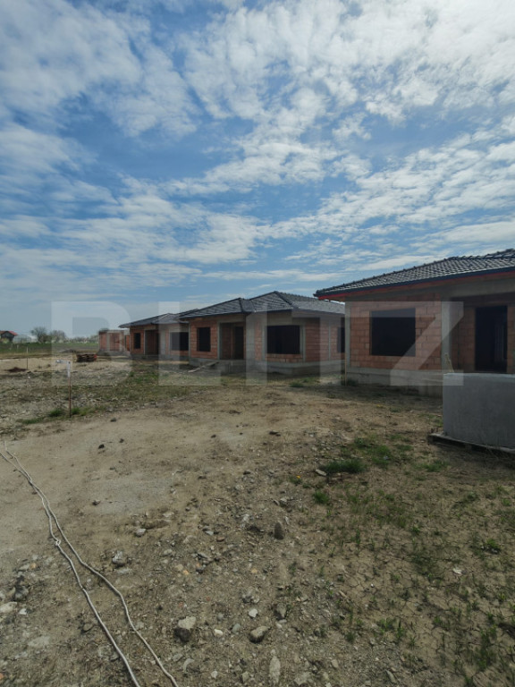 Blitz vă propune spre vânzare, in exclusivitate, 8 case moderne, individuale, situate într-un cartier nou din localitatea Mihai Viteazu. Sunt disponibile două tipuri de locuințe, aproape identice, cu suprafețe de 103 si 108 mp, fiecare beneficiind de un teren generos de aproximativ 530 mp. Casele sunt construite pe un singur nivel și au următoarea compartimentare: terasă de acces acoperită hol spațios 3 dormitoare 2 băi cameră tehnică și cămară bucătărie separată living separat, cu acces direct pe terasa din spate (aprox. 14 mp) ???? Stadiu de predare: la „roșu” ???? Pot fi dotate si predate la stadiul de semifinisat sau finisat contra cost cu: încălzire în pardoseală (confort termic ridicat și eficiență energetică) ferestre PVC cu geam termopan izolație exterioară performantă finisaje realizate conform standardelor actuale ???? Utilități: gaz curent electric apă curentă canalizare (toate trase pe poziție) ✔️ Există posibilitatea de finisare completă contra cost. ???? Opțiuni de achiziție: la stadiul semifinisat : 1460 euro/mp + TVA, utilități incluse și drum privat asfaltat ???? În cadrul cartierului mai sunt disponibile și: 10 loturi de teren (550–600 mp) proiect de casă inclus (identic cu cele deja construite) utilități + drum privat asfaltat ???? Preț teren: 73 euro/mp + TVA ???? Contactați-ne pentru mai multe informații sau pentru programarea unei vizionări! Cod ofertă / ID BLITZ: P169046 Id intern: P169046
