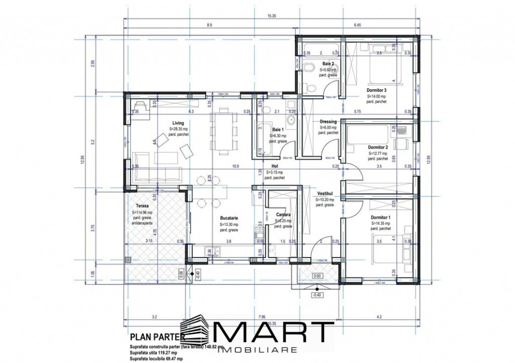 Casă Individuală modernă – 3 Dormitoare, Pod Mansardabi