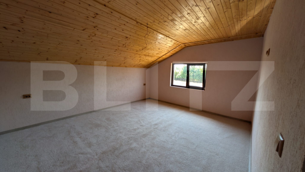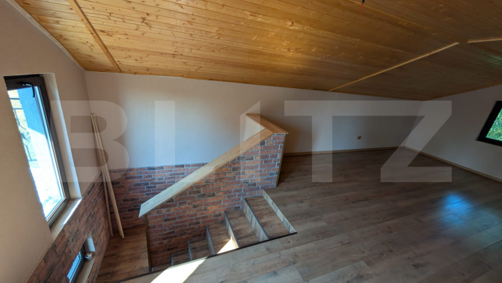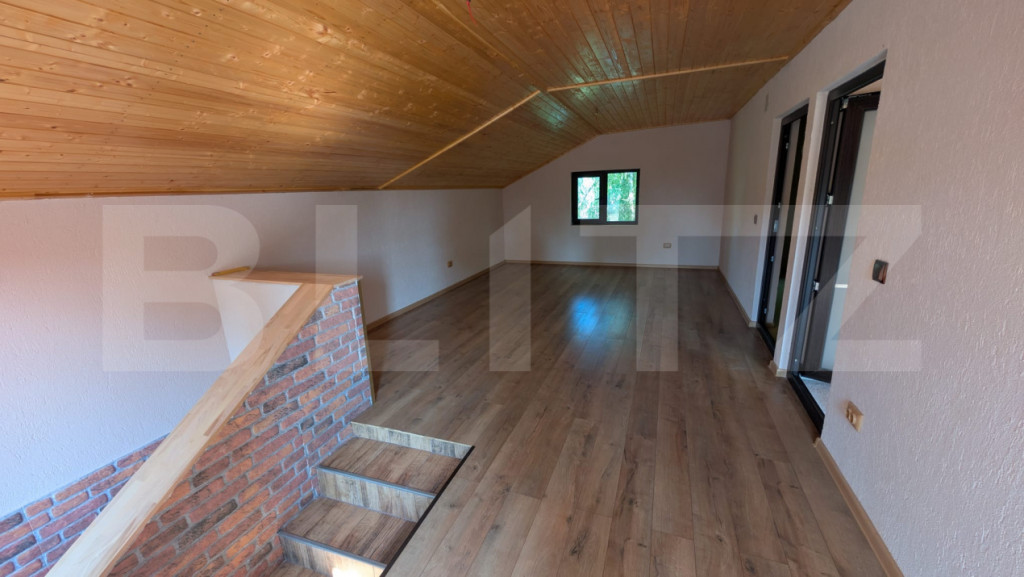 Descoperă confortul unei locuințe construite recent, cu un design practic și spații generoase, amplasată într-o zonă liniștită și plăcută. Detalii: Suprafață construită: 128 mp Regim de înălțime; Parter + Mansardă Suprafață teren: [de completat] mp Construcție solidă din BCA, acoperiș din tablă Bilka, izolație completă Compartimentare inteligentă: Parter: sufragerie spațioasă, bucătărie luminoasă, baie, terasă acoperită cu grătar Etaj: 2 dormitoare, living, balcon Dotări: Geamuri termopan cu profil PVC Uși termopan Nemobilată – libertate totală de amenajare după gustul tău Avantaje: Construcție nouă (2021) – fără griji de renovare Compartimentare practică și spații generoase Terasă cu grătar – perfectă pentru relaxare Zonă liniștită, ideală pentru familie Contactează-ne acum pentru detalii și programarea unei vizionări! Cod ofertă / ID BLITZ: P150618 Id intern: P150618