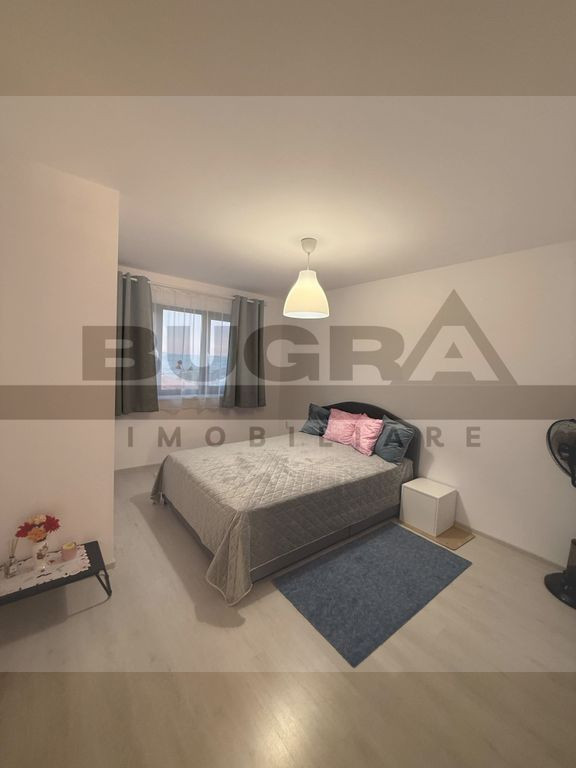 BUGRA Imobiliare oferă spre închiriere o casă nouă, ideală pentru o familie, situată într-o zonă liniștită din Dezmir, cu acces rapid către Cluj-Napoca. Proprietatea este complet mobilată și utilată, construită în 2020, și se află pe o stradă privată, asfaltată, cu iluminat public și acces prin poartă electrică.