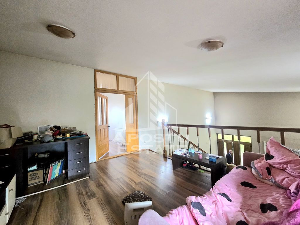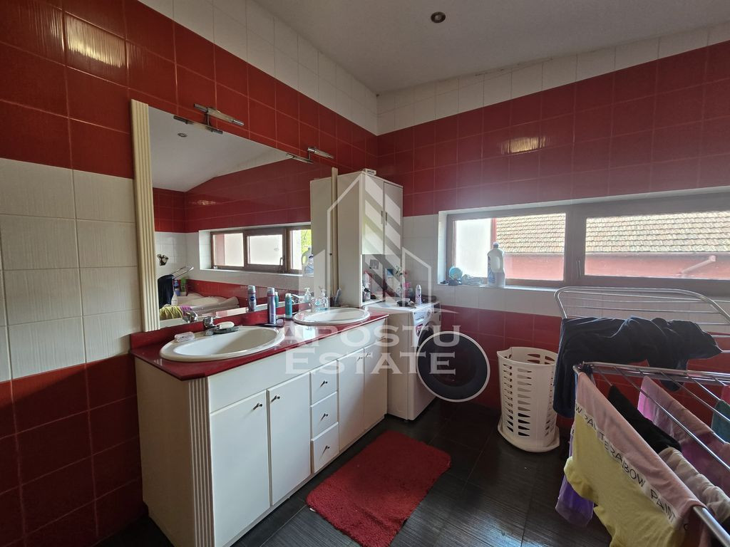 Apostu Estate va propune spre vanzare o casa individuala deosebita, situata in zona Mehala. La doar cateva minute fata de numeroase puncte de interes si statii ale mijloacelor de transport in comun. La 1.4 km fata de Lidl Torontalului și 2.3 km fata de Iulis Town. Casa beneficiaza de un teren generos de 629 mp si o suprafata utila de 320 mp. Curte frumos amenajata, cu spatii verzi, atat in fata, cat si in spatele casei. Pomi fructiferi si plante decorative. Constructie din caramida, realizata in anul 2009. Izolatie cu polistiren. Regim de inaltime: P+M. Casa este împărțită în 2 corpuri, cu acces separat. Doua terase exterioare acoperite, una in spatele casei, iar cealalta pe lateral. Beneficiaza de gresie, fainata, tamplarie PVC si geamuri termopan. Toate utilitatitile disponibie: apa, gaz, curent, canalizare. Incalzirea se realizeaza prin centrala termica pe gaz. Una pentru fiecare corp. Incalzire prin calorifere. Doua aparate de aer condiționat. Aces auto atat in fata casei, cat si in curte. Posibilitate de parcare a 4 masini. Compartimentare: Primul corp, parter: living open space cu bucataria, baie de serviciu, terasa acoperita Primul corp, mansarda: living, 2 dormitoare, 1 hol, 1 baie și 1 terasa Cel de al doilea corp, parter: bucatarie, living, balcon, terasa acoperita, 2 bai si 3 dormitoare Se vinde mobilata. Oferim consultanta bancara gratuita prin intermediul colaboratorilor nostri. Va asteptam cu drag la o vizionare.