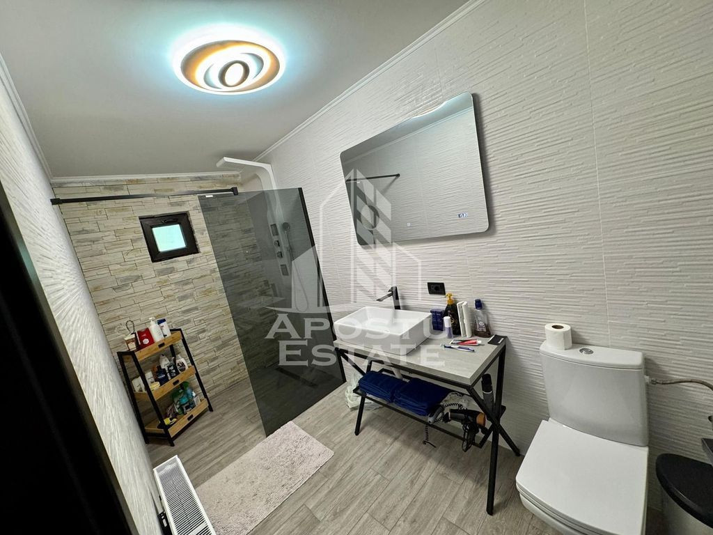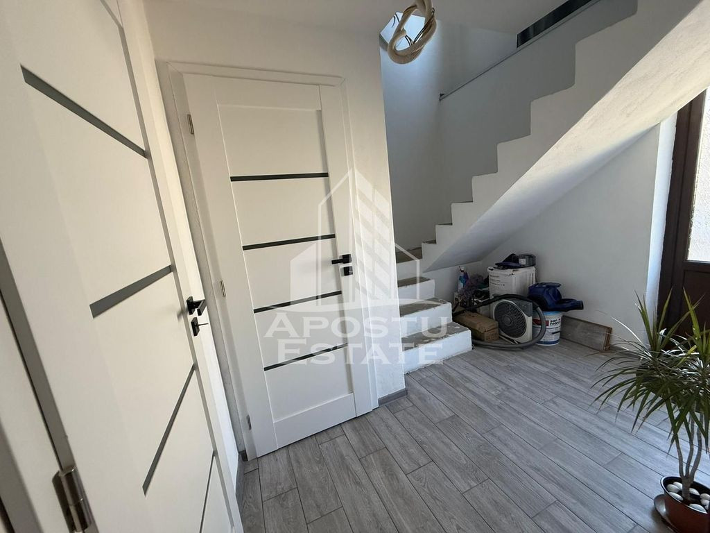 Apostu Estate va propune spre vanzare o proprietate deosebita situata in zona Modern , pe un teren de 854 mp. Casa finalizata in 2022, regim inaltime P+1E+M ,cu o suprafata de 181 mp si este compartmentata astfel: Parter cu suprafata de 89,65 mp care nu a fost renovat: -hol -camera -bucatarie -spatiu depozitare -baie cu cada Etaj cu suprafata de 91,09mp, complet renovat: -hol -dormitor -hol -dormitor2 -living -baie cu dus walk in Mansarda este utilata, dar necesita amenajare si compartimentare la alegerea noilor proprietari. Acoperis refacut in 2022 cu sindrila bituminoasa (Tegola) Curte, gradina cu pomi fructiferi si cultivata cu legume,terasa,magazie depozitare 10,50mp si garaj de 22,61mp. Casa este racordata la toate utilitatile(gaz,curent,retea apa si canal,salubrizare si internet),dotata cu centrala proprie, incalzire in pardoseala si calorifere cu distribuitor la etaj, iar la parter incalzire cu calorifere. Se vinde mobilat si utilat. Distante: -Centrul orasului la 11 min cu masina -Profi la 2 min cu masina -OMV la 4 min cu masina -Iulius mall la 11 min cu masina -Scoli,magazine,farmacii,mijoace de transport in comun Oferim consultanta si solutii financiare prin colaboratorii nostri. Va invitam cu drag la o vizionare! Id intern:CP2777577