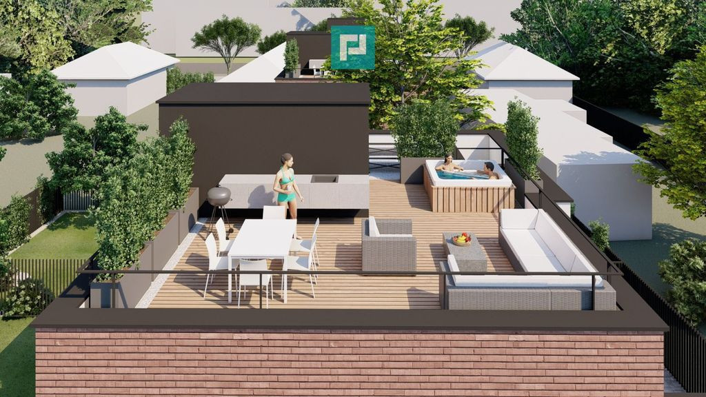 – Terasă circulabilă dotată cu deck WPC, jacuzzi și instalație pentru bucătărie exterioară –