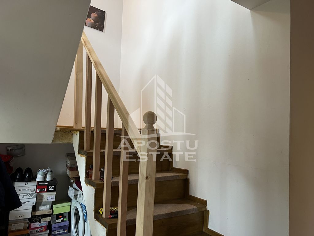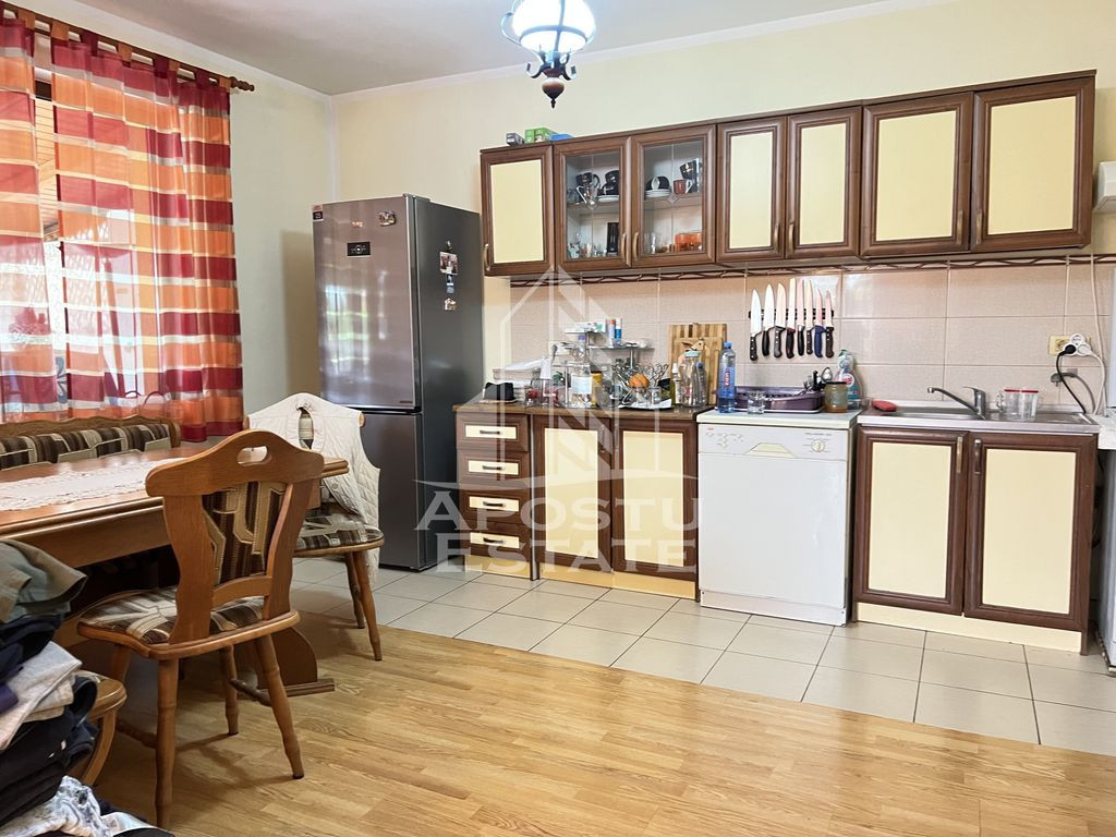 Apostu Estate vă propune spre vânzare o casă spațioasă și bine compartimentată, situată într-o zonă liniștită din Sânandrei, ideală pentru familii care își doresc liniște, confort și acces rapid către oraș. Proprietatea este construită în 2009 și se remarcă printr-o curte generoasă și spații bine gândite, atât la interior cât și la exterior. Detalii proprietate: • Teren: 856 mp • Suprafață utilă: 172 mp (86 mp la parter + 86 mp la etaj) • Construcție solidă • Fosa septică funcțională • Se vinde parțial mobilată • Preț final: 255.000 € Compartimentare: Parter: • Living generos cu bucătărie open space si masina de spalat vase • Cameră tehnică • Dormitor/Birou ideal pentru lucrul de acasă • Baie cu cadă • Terasă spațioasă – 40 mp • Anexă de depozitare – 10 mp Etaj: • 3 dormitoare • Baie completă cu duș • Unul dintre dormitoare are: • Baie nefinisată cu posibilitate de amenajare si ieșire pe balcon • Balcon suplimentar pe hol Alte beneficii: • Pod înalt – perfect pentru depozitare • Curte mare, potrivită pentru grădină, loc de joacă sau relaxare Va asteptam cu drag la vizionare! ID Intern: CP2558330!