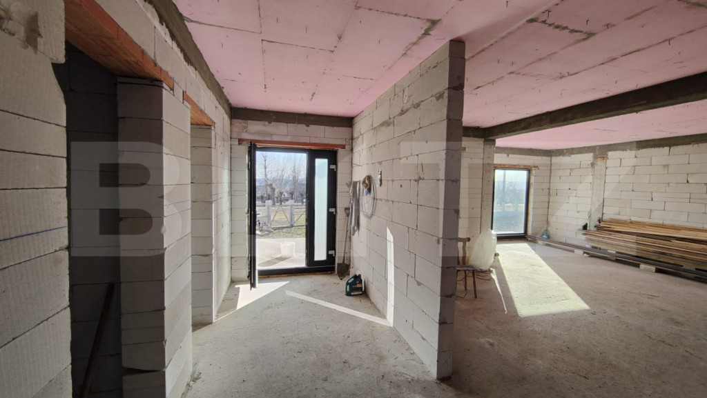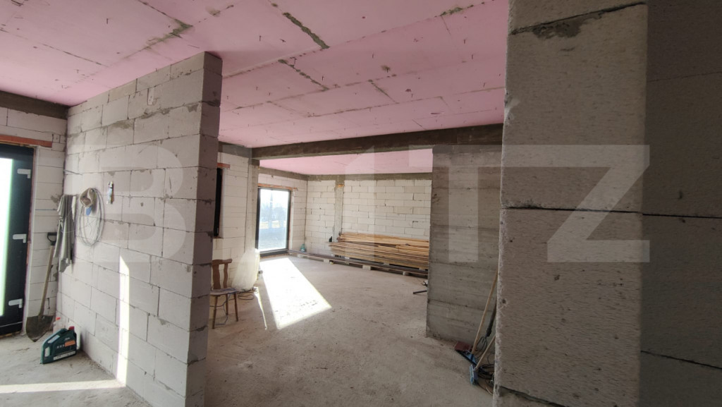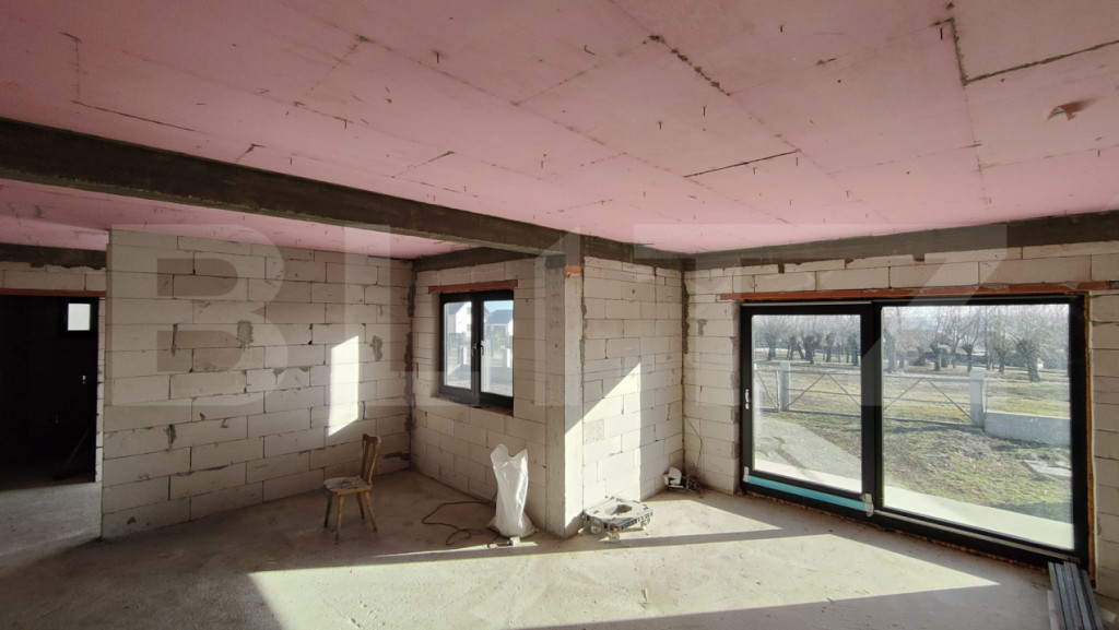 Blitz Imobiliare vă prezintă o proprietate cu potențial remarcabil, ideală pentru cei care își doresc un cămin personalizat într-un cadru liniștit. Casă parter, 160 mp utili, amplasată pe un teren generos de 1300 mp, cu acces din două drumuri. Compartimentare echilibrată: 3 dormitoare luminoase, living open-space cu bucătărie, 2 băi, garaj și terasă cu acces direct din zona de zi. Construcția din BCA este în stadiu final de predare „la roșu”, oferindu-vă libertatea de a definitiva amenajarea conform propriului stil. O oportunitate rară pentru cei care caută spațiu, intimitate și posibilitatea de a crea un cămin exact așa cum și-l imaginează. Pentru detalii și programarea unei vizionări, echipa Blitz Imobiliare vă stă la dispoziție. Cod ofertă / ID BLITZ: P165857 Id intern: P165857