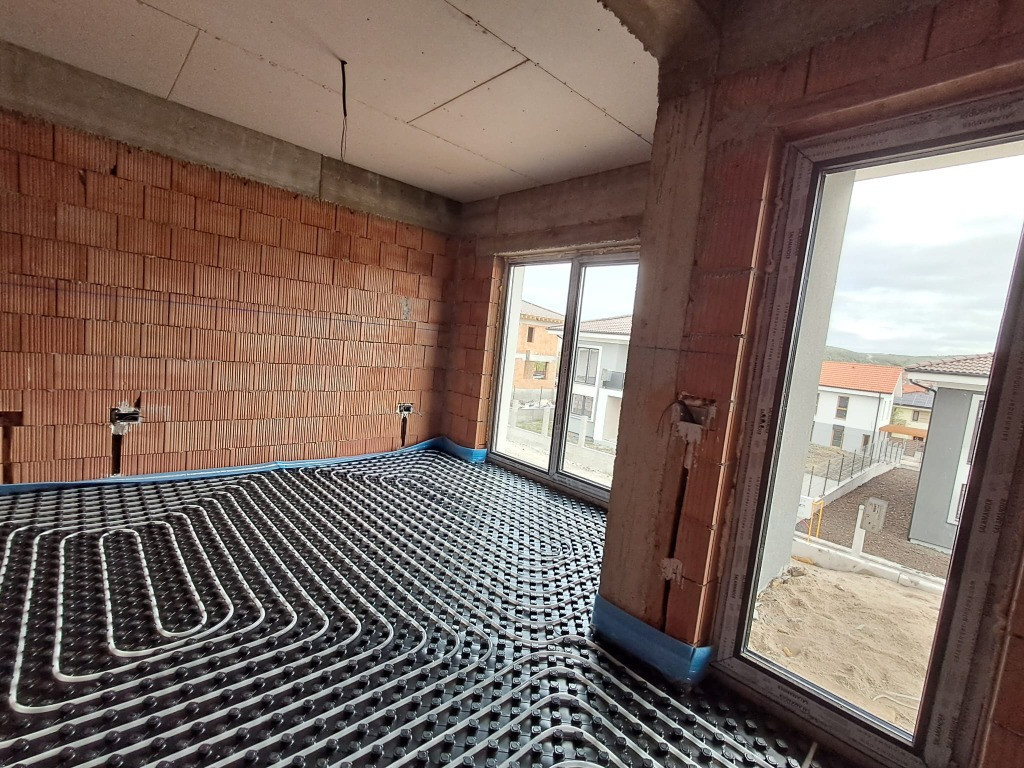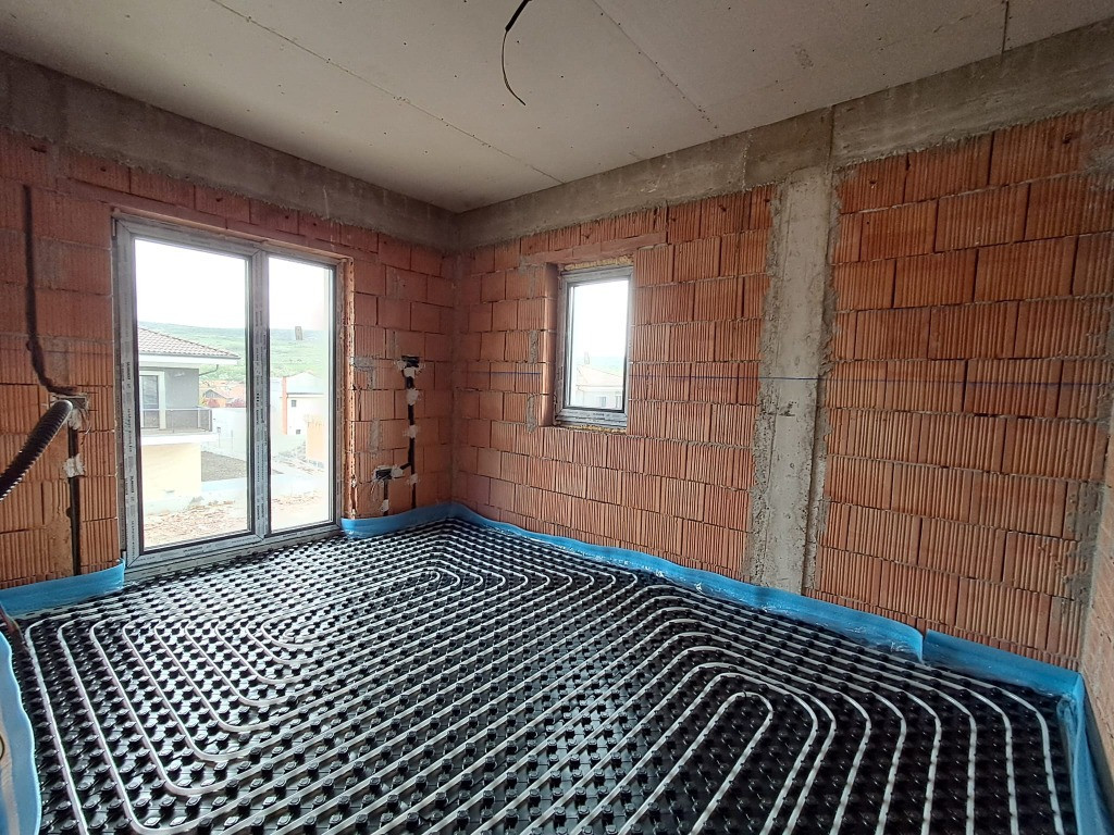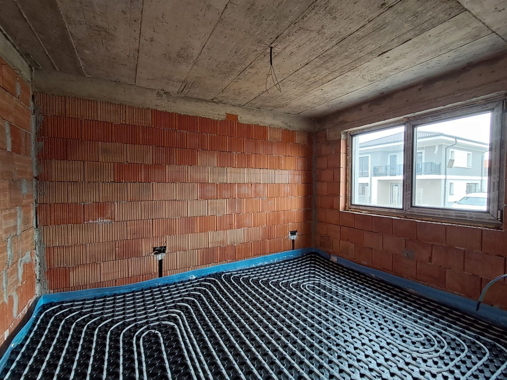 Descriere Casa individuala regim inaltime Parter+Etaj, structura din caramida, izolatie exterioara 10 cm, tamplaria pvc, vopsea decorativa pe exterior, aplicatie de piatra pe fatada, balustrade la balcoane din sticla securizata. Suprafata casa utila parter 60,72 mp+etaj 57,64 mp, total 118,36 mp. Compartimentare excelenta prin adaugarea unui dormitor la parter iar la etaj doua balcoane. Parter: hol/debara 6,42 mp; baie 4,72 mp; dormitor 12,04 mp; living 21,4 mp; bucatarie cu loc de luat masa 13,09 mp; spatiu depozitare 2,69 mp; acces intrare principala sup.7,27 mp si acces intrare secundara in living 7,13 mp; casa scarii. Etaj : 3 dormitoare ( 15,84 mp+12,07 mp+15,78 mp), 2 bai ( 5,32 mp+5,43 mp), 2 balcoane ( 7,36 mp+7,86 mp), hol acces camere 3,2 mp. Dormitor principal cu baie proprie si balcon. Stadiu actual al casei apriie 2026. Se vinde la stadiul de semifinisat la interior, cu instalatii trase pe pozitie ( electrice, sanitare, termice) si finisata la exterior cu vopsea decorativa, geamuri termopan, aplicatii piatra pe fatada, pavaj in zona de parcare si alei pietonale. Pret de vanzare 250.000 euro include TVA in pret. Se intermediaza prin Agentia Record Imobiliare.
