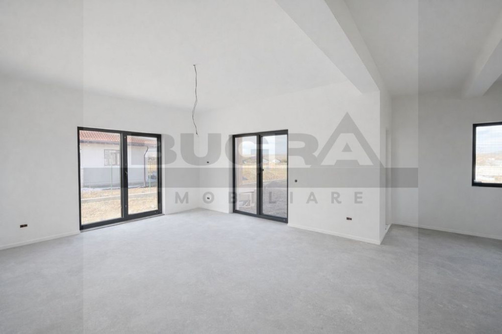 Bugra Imobiliare vă propune spre vânzare o casă individuală premium, situată într-o zonă liniștită și aerisită din Jucu de Mijloc — o proprietate ideală pentru cei care își doresc intimitate, spațiu generos și confort modern. Suprafață și teren 114 mp utili 750 mp teren Terasă de aproximativ 8 mp 2 locuri de parcare în curte Pod de ~100 mp pentru depozitare Compartimentare practică și echilibrată 3 dormitoare luminoase Living spațios cu zonă de dining Bucătărie separată 2 băi (una cu geam pentru ventilație naturală) Cămară Dressing Confort și dotări Încălzire în pardoseală în toată casa Centrală termică proprie Izolație exterioară de calitate Finisaje moderne, materiale atent alese Proprietatea este pregătită pentru mutare imediată Avantaje cheie Terenul generos permite multiple opțiuni de amenajare — grădină, spațiu de relaxare, terasă extinsă sau zonă de joacă. Locuința este construită cu atenție la detalii și eficiență energetică, iar compartimentarea inteligentă elimină spațiile pierdute și maximizează funcționalitatea. Localizare Aproape de școli, grădiniță și creșă Magazine și stații de transport în apropiere Acces rapid către principalele artere rutiere O proprietate ideală pentru cei care caută liniște, spațiu și confort fără compromisuri. Pentru detalii suplimentare sau programarea unei vizionări, echipa Bugra Imobiliare vă stă la dispoziție.