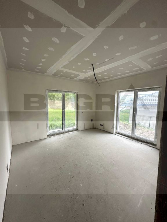 Va oferim spre vanzare ultima casa disponibila intr-un ansamblu de 14 case, situata in localitatea Popesti (Baciu). Este o constructie noua, pe un nivel, cu o suprafata utila de 100 mp si un teren aferent de 520 mp. Compartimentare: 3 dormitoare, 2 bai, living cu bucatarie. Detalii tehnice: -incalzire in pardoseala, centrala termica inclusa -tamplarie Salamander 3 sticle, 7 camere -caramida Cemacon -izolatie polistiren grafitat -pod pentru depozittare - racordata la toate utilitatile: curent, apa, canalizare, ape pluviale si gaz Accesul pana la ansamblu se realizeaza pe drum public asfaltat, drumul de incinta are latimea de 8 metri. La pretul afisat se adauga TVA. Pentru detalii suplimentare va stam la dispozitie.