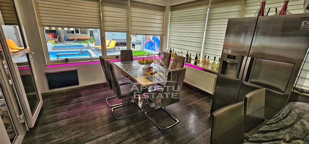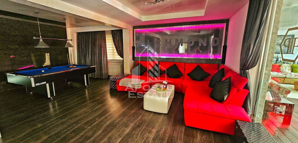 APOSTU ESTATE va propune spre vanzare o casa exclusivista cu 7 camere in zona Calea Aradului. Imobilul dispune de o suprafata utila de 285 mp utili și 600 mp de teren. Proprietatea emana rafinament și ofera o experiența de trai extraordinara. impresionand prin atentia la detalii și facilitatile oferite. Exteriorul casei include o piscina exterioara eleganta, perfecta pentru relaxare și distractie in aer liber. Un jacuzzi interior adauga un plus de confort, oferind o oaza privata pentru momentele de relaxare. In curtea generoasa, gasim și un spațiu dedicat gratarului, perfect pentru petreceri și evenimente sociale in aer liber. Cele 8 locuri de parcare asigura comoditate și spațiu suficient pentru oaspeți sau membrii familiei. In interior, cele 7 camere sunt distribuite atent, oferind intimitate și spațiu personal pentru fiecare locatar, la etaj aflandu-se 3 dormitoare. La parter, impresioneaza o eleganta sala de biliard, un loc de barbecue, un spatiu privat ce constituie un element de relaxare și confort, precum si veranda, oferind o priveliste splendida asupra proprietatii. Bucataria este proiectata cu atentie la detalii și echipata cu cele mai moderne electrocasnice. Un dormitor și o baie completeaza facilitatile de la parter. Suprafata utila de 285 de metri patrati reflecta generozitatea spațiilor interioare și atenția la detalii in proiectare. Aceasta casa reprezinta intr-adevar o oportunitate unica de a trai intr-un mediu rafinat, unde confortul și stilul se imbina perfect. Rezumat compartimentare: Parter: -hol de acces -bucatarie -living cu masa de biliard -camera pentru fumat -living cu terasa si jacuzzi -baie Etaj 1: -3 dormitoare -baie Distante(mers pe jos) - la 3 minute de supermarket - la 4 minute de parc - la 15 minute de Iulius Mall - la 37 minute de Centru Oferim consultanta si solutii financiare prin colaboratorii nostri. Va invitam cu drag la o vizionare! ID intern: 1960100