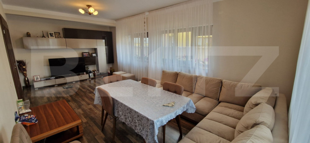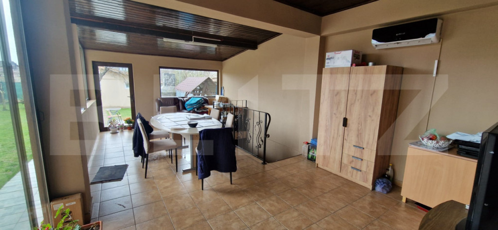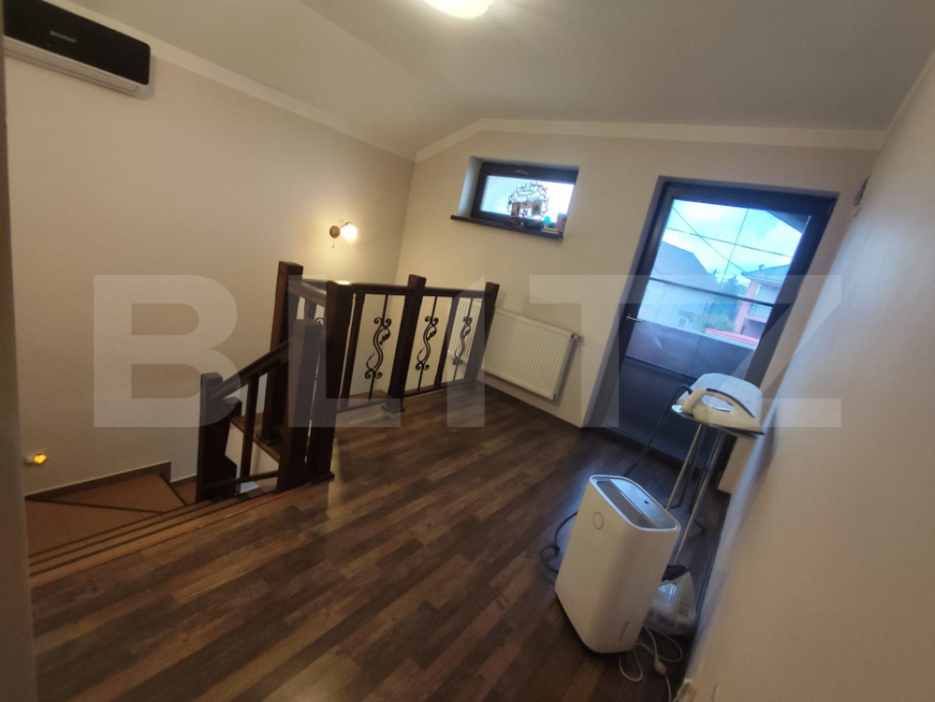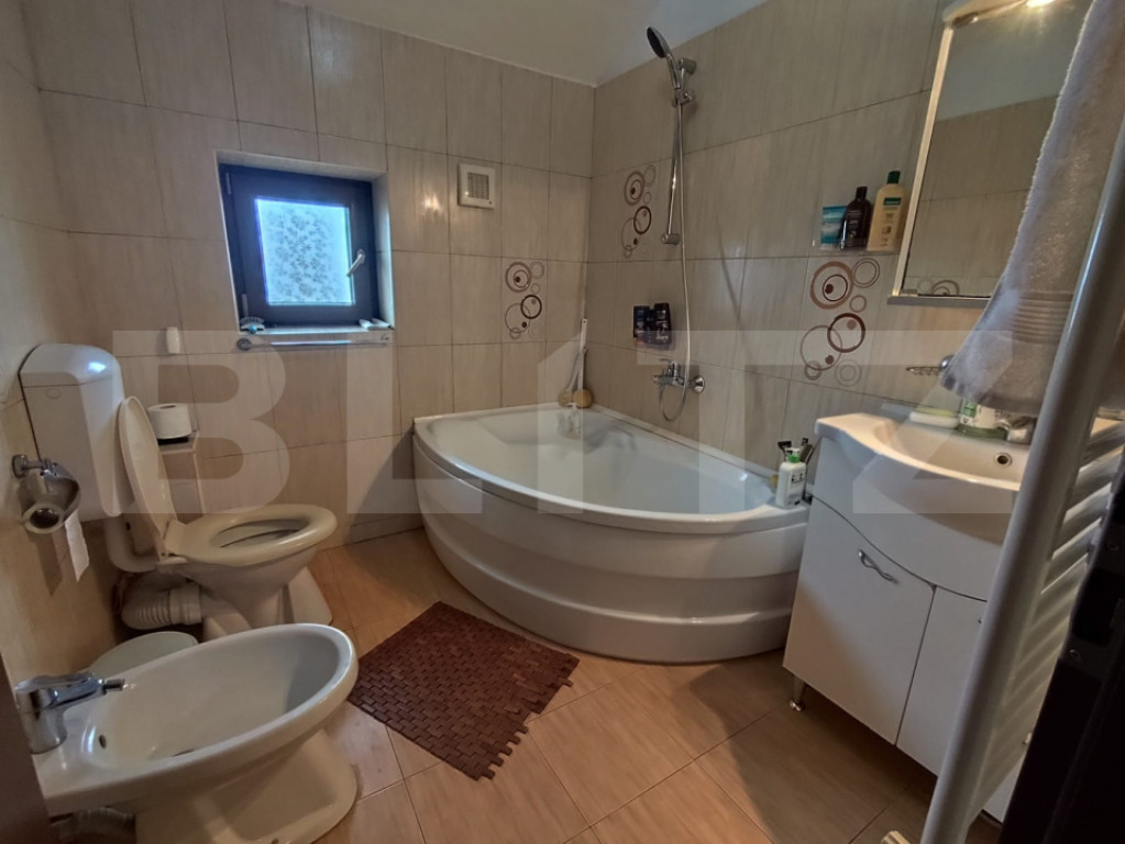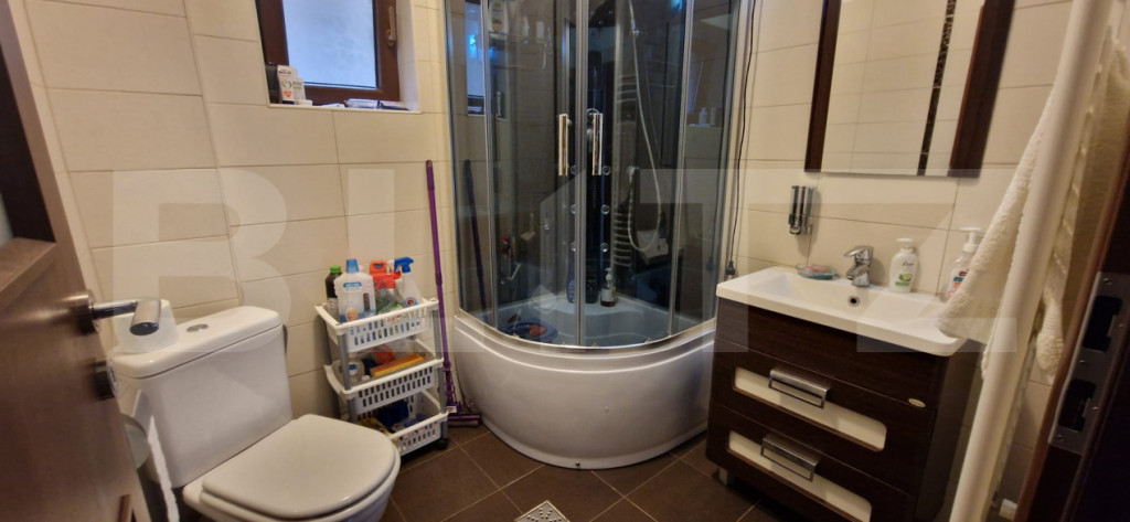 Blitz vă propune spre vânzare o casă modernă P+M, construită în 2014, din materiale premium, ideală pentru o familie care își dorește confort, spațiu și liniște. Imobilul este realizat din cărămidă Brikstone, cu acoperiș tip șarpantă și țiglă Tondach, folosindu-se materiale de cea mai bună calitate: beton B250 (aprox. 260 m³), armătură din fier (12 tone conform proiectului), finisaje și tencuială decorativă Caparol Casa Bravo. Proprietatea este împrejmuită cu gard din bolțari, completat cu țiglă, iar curtea este amenajată cu pavele din beton, grătar dedicat, gazon și sistem de irigare. Casa are regim de înălțime P+M și este construită pe o amprentă la sol de 95 mp. Dispune de o terasă închisă cu tâmplărie termopan de aproximativ 30 mp, iar sub aceasta se află un beci de circa 20 mp. Imobilul este racordat la toate utilitățile: curent electric, gaze naturale, apă, canalizare, internet. Casa beneficiază de încălzire cu centrală pe gaz și calorifere, oferind confort termic pe tot parcursul anului. Locația oferă liniște, acces facil și un cadru ideal pentru locuit. Strada este asfaltată și beneficiază de iluminat public. Locația este excelentă, la doar 3–5 minute de mers cu mașina față de noul spital în construcție și DEx12. Compartimentare: Parter: living spațios (aprox. 28 mp), dormitor (12 mp), baie cu cabină de duș, bucătărie cu acces direct pe terasă Etaj mansardat (H 2,00–2,10 m): 3 dormitoare complet mobilate, baie cu cadă și bideu, dressing pentru haine, dressing pentru încălțăminte, balcon cu design modern Mansarda este realizată din beton și dispune de pod pentru depozitare. În curte se regăsește și o anexă utilă, compusă din spațiu de depozitare și toaletă complet utilată. Curtea este frumos amenajată, cu plante mature și gazon, oferind un ambient plăcut și relaxant. Pentru mai multe detalii sau pentru programarea unei vizionări, vă stăm cu drag la dispoziție! Cod ofertă / ID BLITZ: P168433 Id intern: P168433